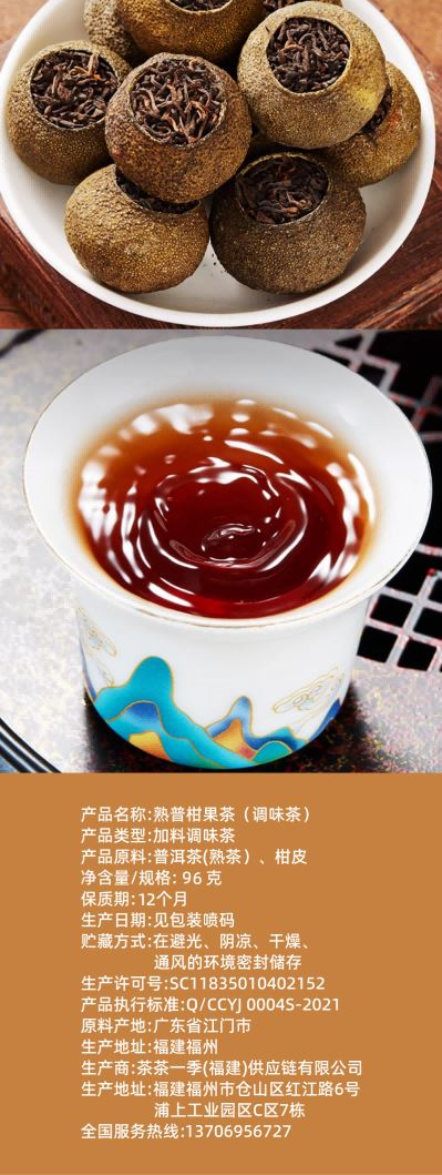 茶茶一季熟普柑果茶96g(12g*8颗),以“柑香馥郁·醇厚甘润”为核心卖点。
