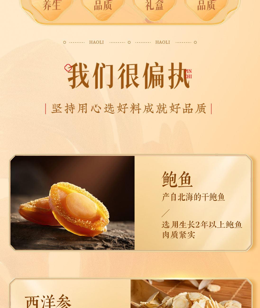 配置:羊肚菌(9-11cm)34g、鲍鱼96g、西洋参50g 商品规格:180g/盒 产品尺寸:305*305*97mm 保质期:12个月 京东自营销量好评1w+,源头工厂,支持项目授权,项目保护