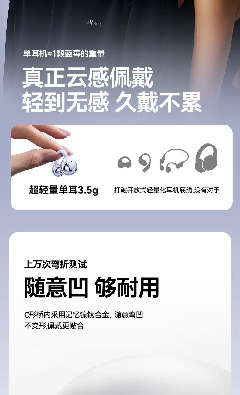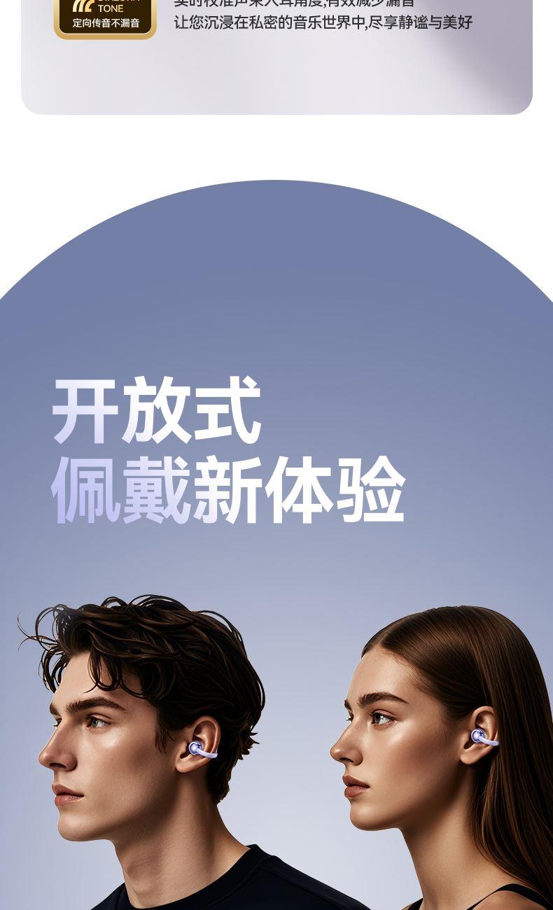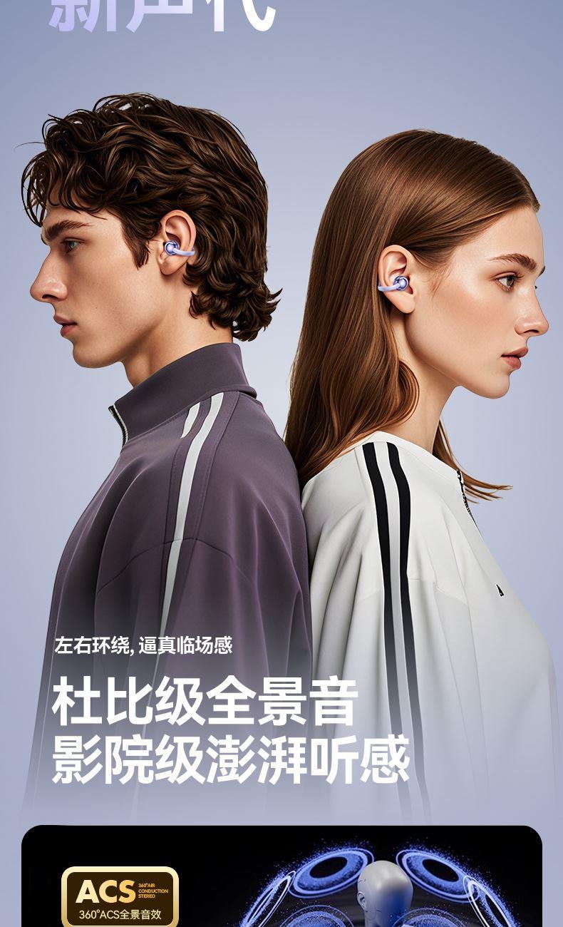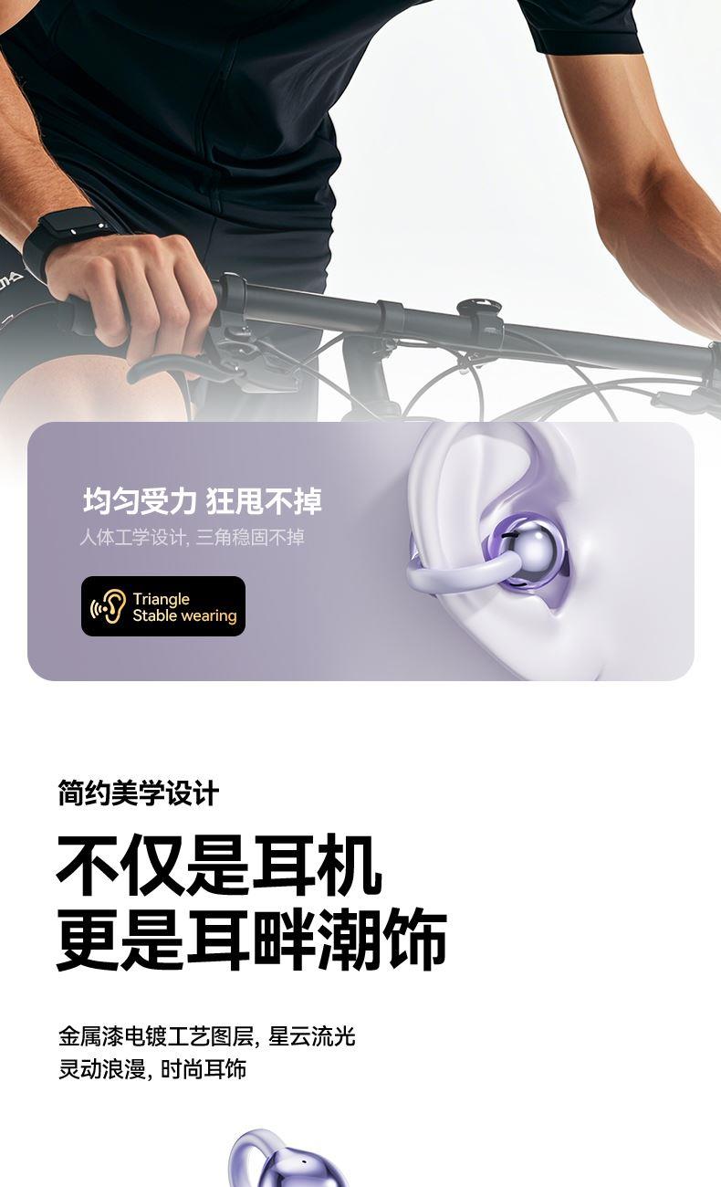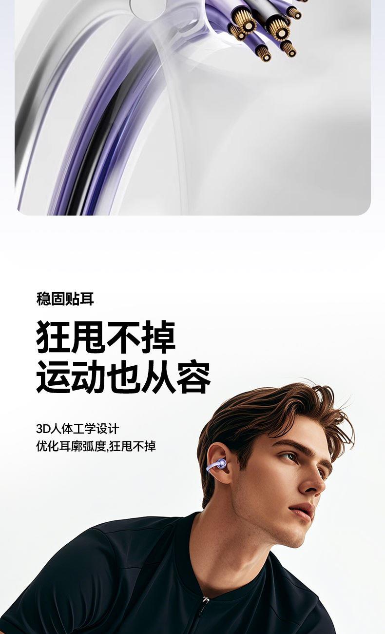 产品规格:6.4*5.1*3cm 产品净重:48g 材 料:ABS 产品颜色:黑色 紫色 肤色 使用时间:2-3小时 连接距离:10m 耳机容量:30mAh 电池容量:230mAh 充电电压:5V 产品特点: 智能指纹触控 触控随心 超轻耳夹 不入耳 真无感 人体工学设计 三角稳固不掉 蓝牙5.4强大内芯 稳定不断连