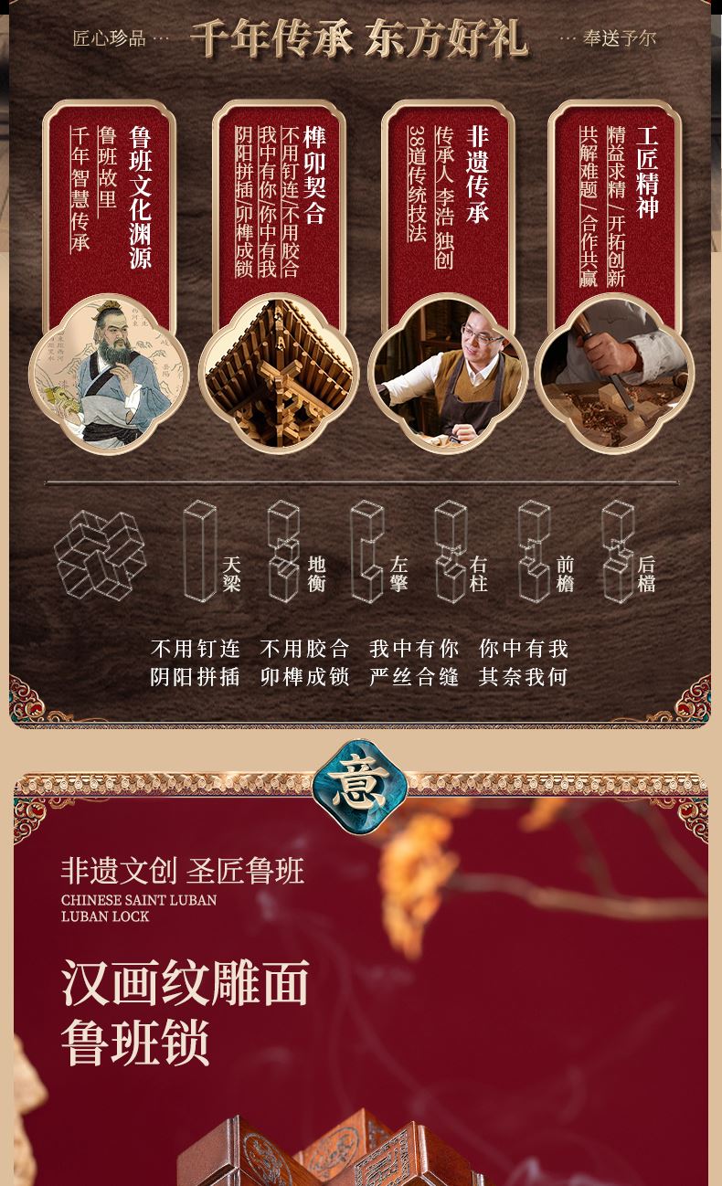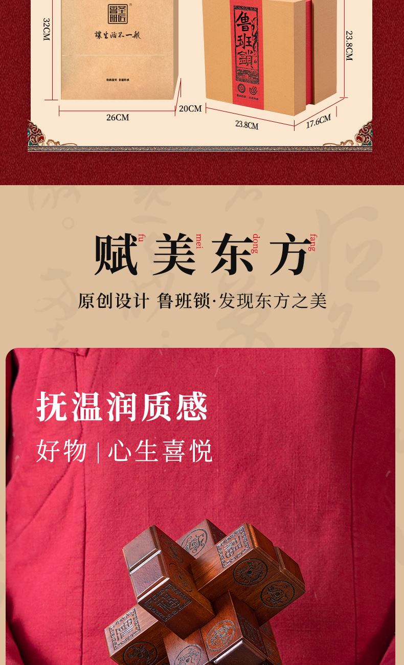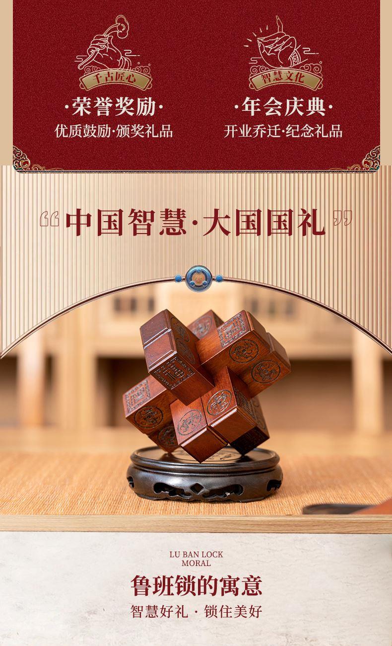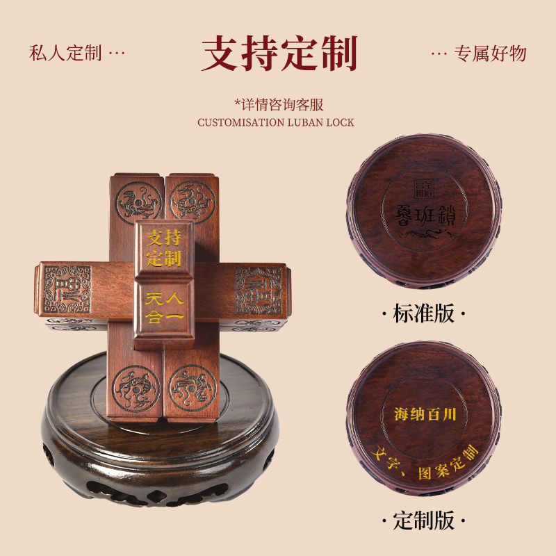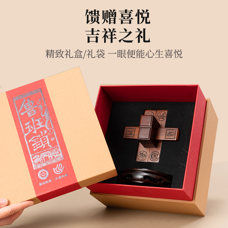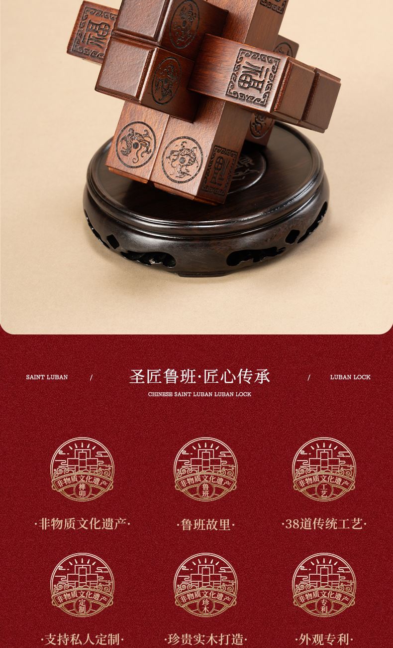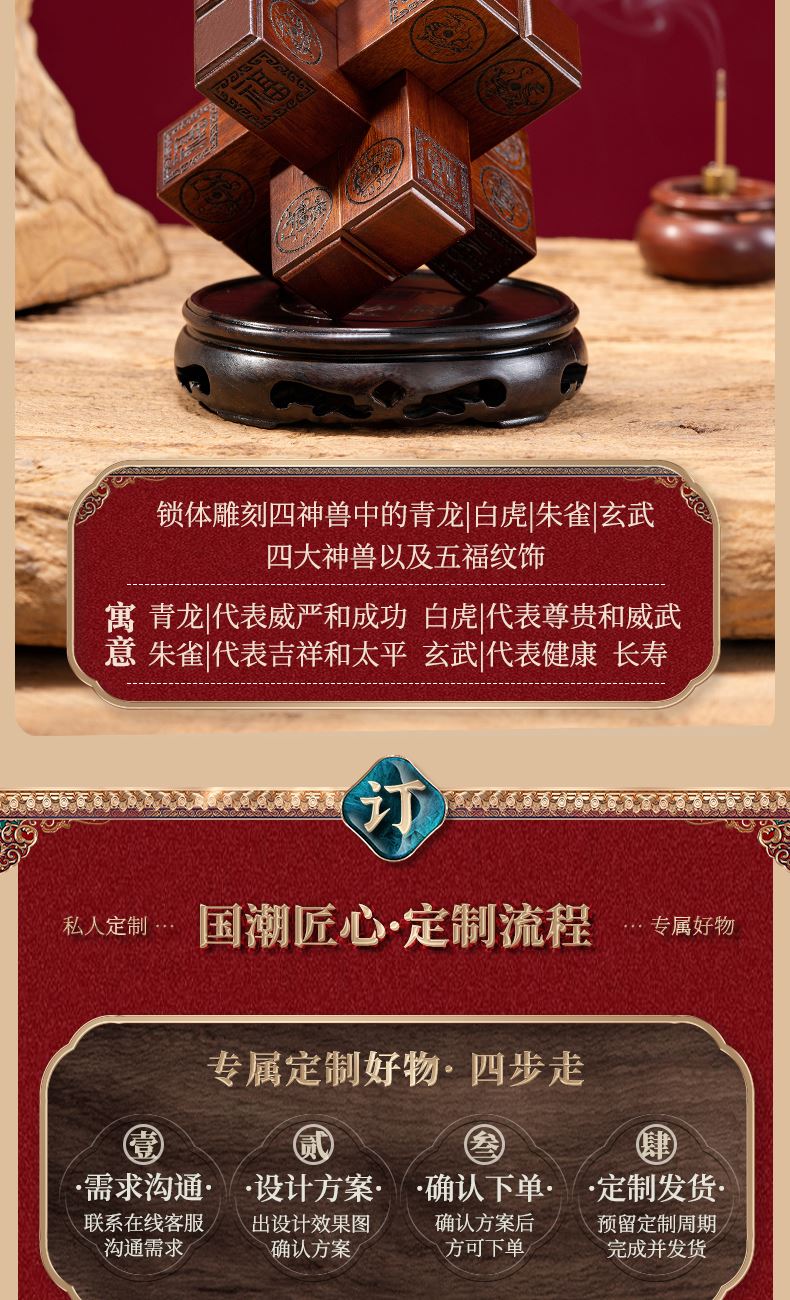 汉画像石映千古,鲁班巧锁蕴才智。这款汉画纹雕刻鲁班锁沿袭传统六棒结构,精选花梨木锁体,配以黑檀木底座,质地高雅,色泽古雅。采用激光雕刻技艺,巧妙融合汉画像石中四神兽——青龙、白虎、朱雀、玄武及五福图腾,象征幸运、成功与连绵福泽,寓意深远。汉画像石之古朴,与鲁班锁之精巧,相得益彰。置于案头,既能彰显主人高雅品味,又能镇宅纳福,实为收藏与赠礼之佳选,意义非凡。