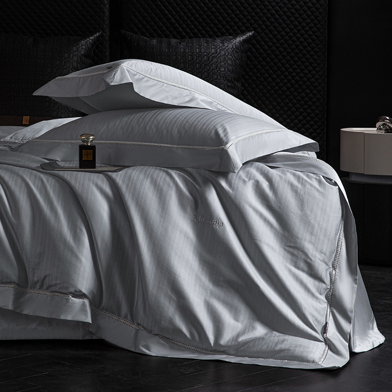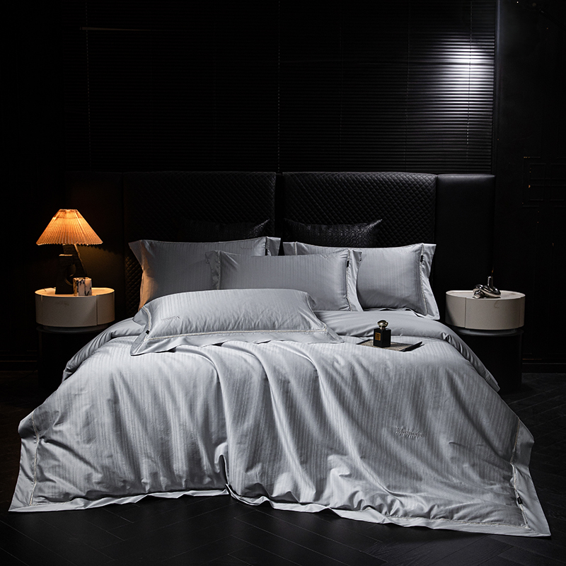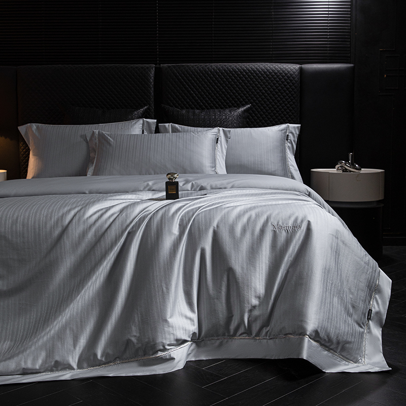 被套:200*230cm 床单:230*245cm 枕套:48*74cm*2 面料:100支全棉提花+银丝 产品包装:精美礼盒 包装尺寸:43.5*33*10cm 1.面料轻薄,具有良好的透气性,保持肌肤干爽。 2.提花工艺美观,使图案呈现凹凸不平的立体效果,增加视觉层次感和触感丰富度。