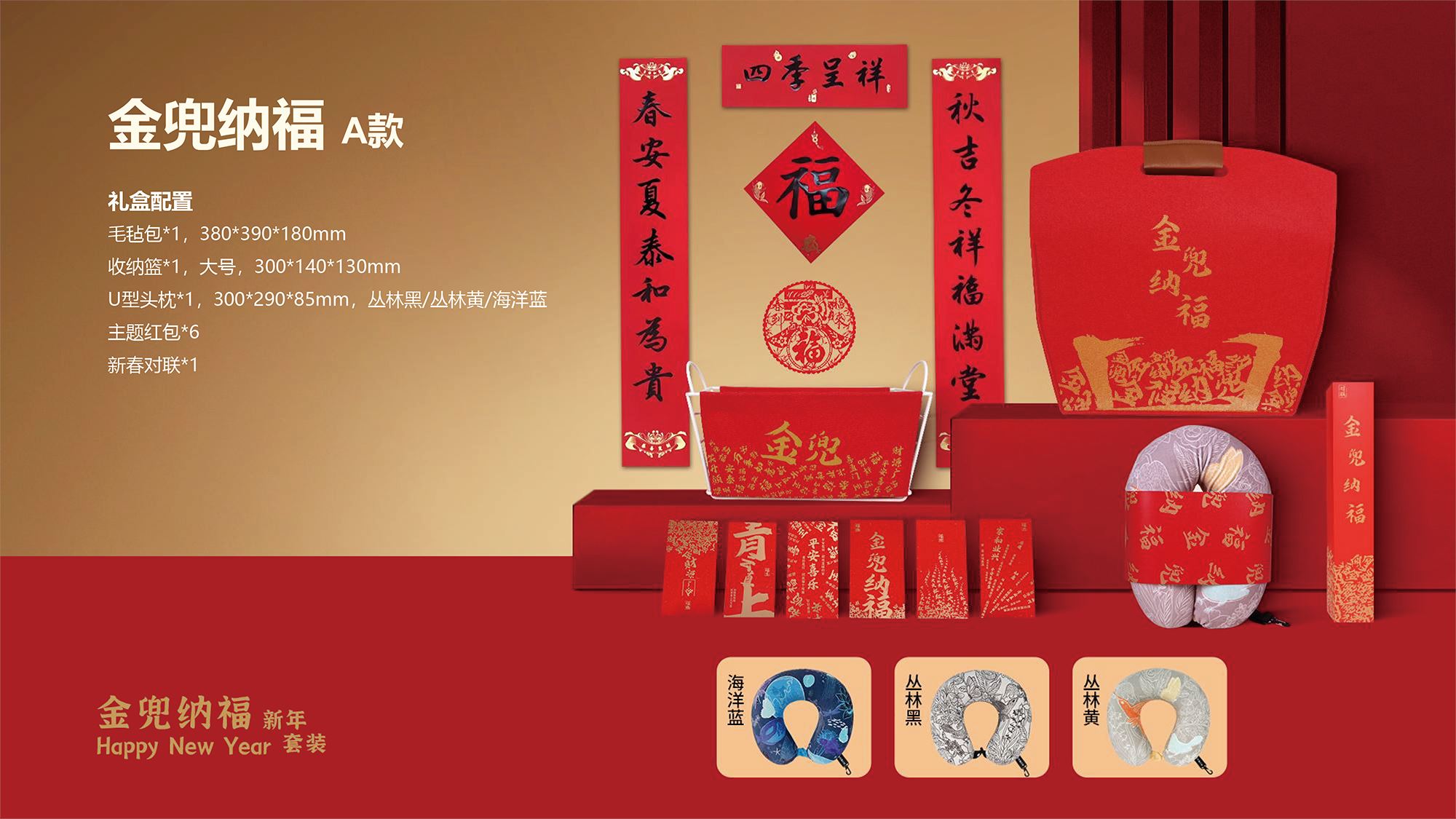 毛毡包*1 380*390*180mm 收纳篮*1,大号, 300*140*130mm 主颖红包*6 新春对联*1 U型头枕*1 300*290*85mm, 从林黑/从林黄/海洋蓝