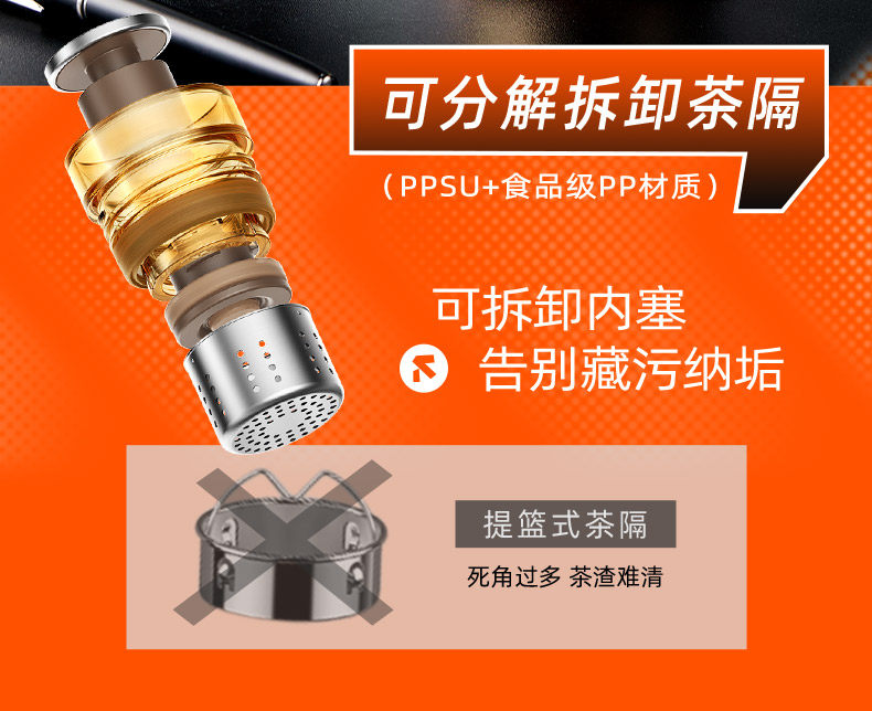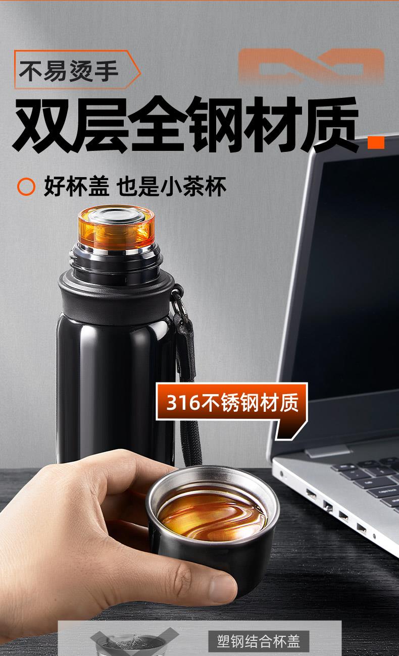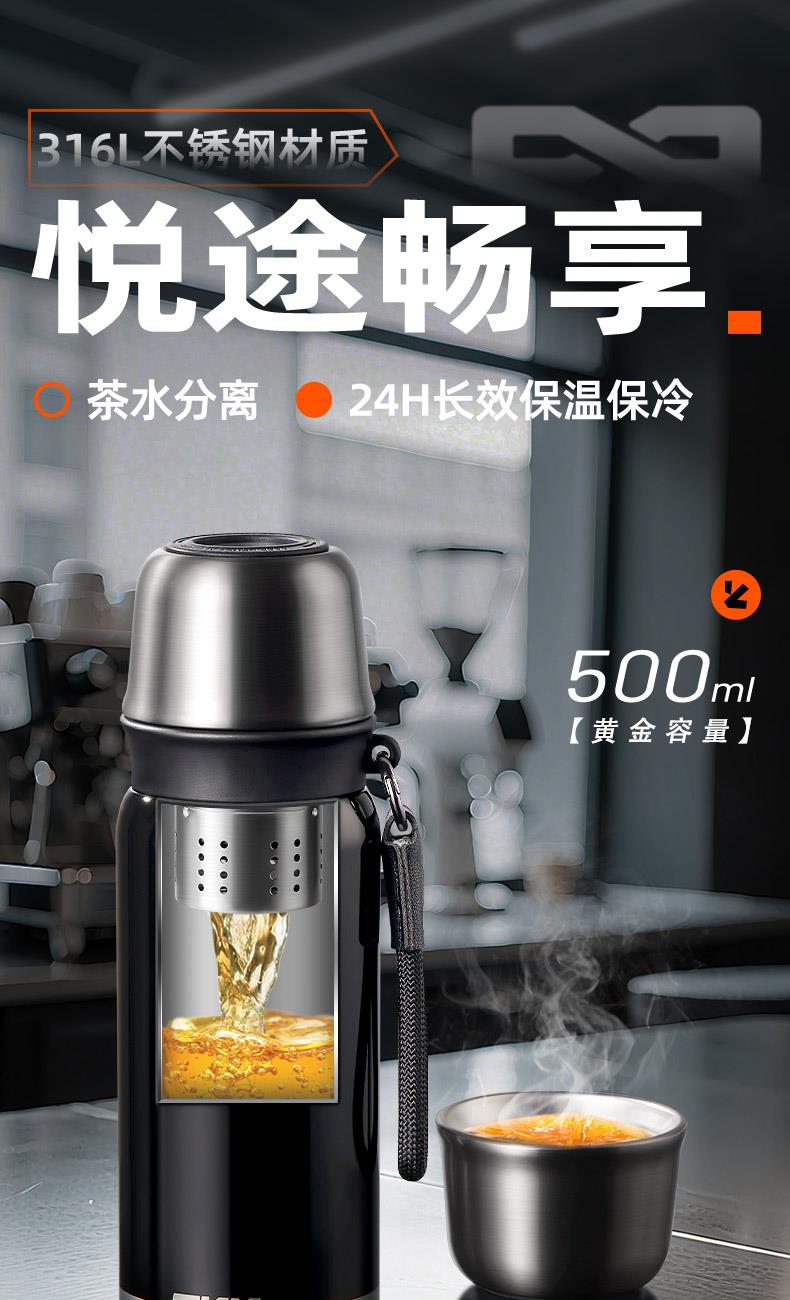 商品容量:500mL 杯身材质:316不锈钢 商品净重:407g 商品尺寸:7.3X23.8cm 1、316L不锈钢材质 、茶水分离、24H长效保温保冷 、一拎就走 、密封不漏 、按 键 出 水 内置茶隔 2、大口径水杯杯口,轻松倒水品茶内置316L不锈钢茶隔,更安全健康