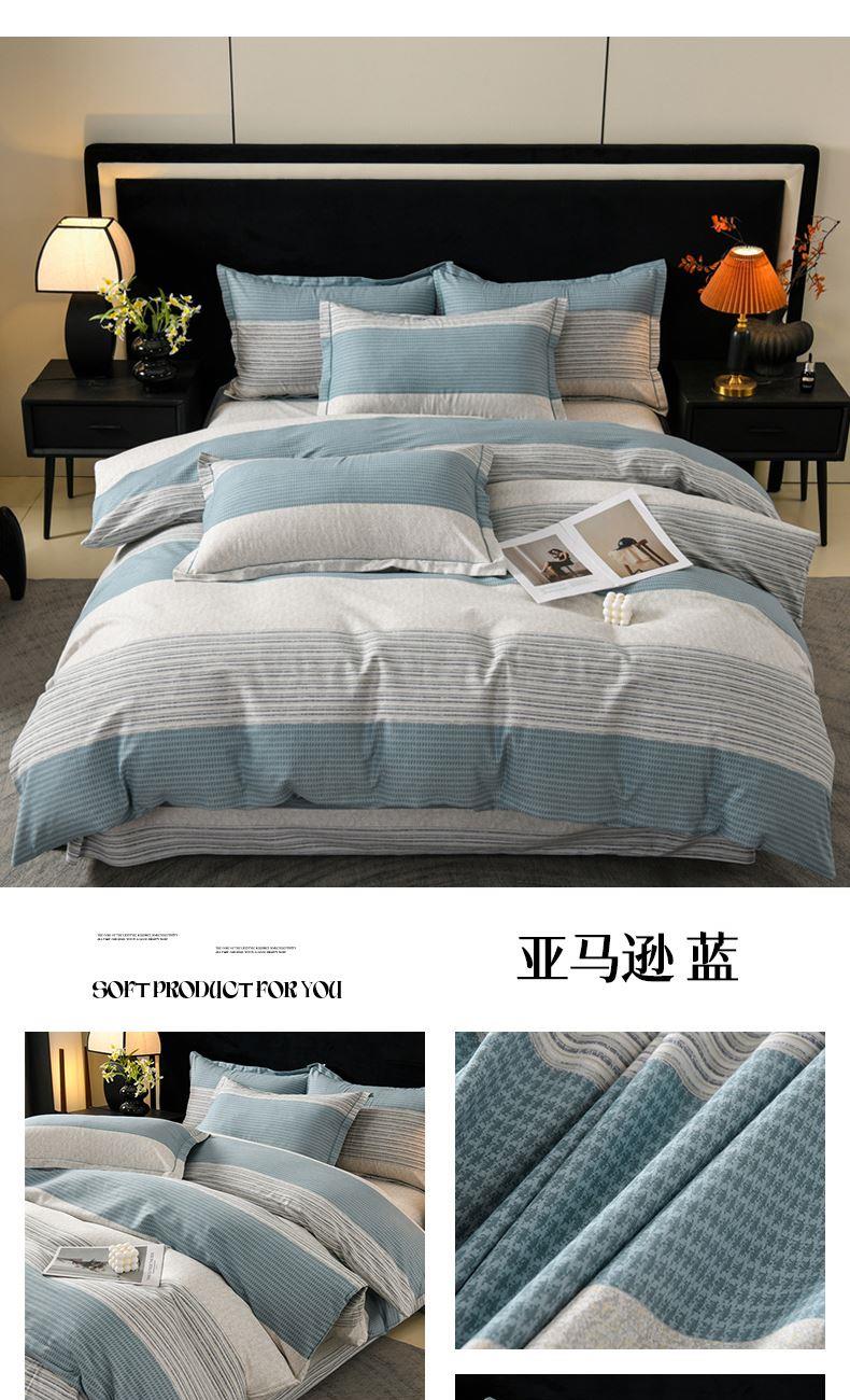 被套:200*230cm 床单:245*250cm 枕套:48*74cm*2 面料:全棉磨毛 产品包装:精美礼盒 1.全棉磨毛,纤维柔长,绒毛更加丰盈密集,柔软细腻,亲肤呵护,保暖加倍。 2.采用活性印染工艺,色彩靓玉,耐洗不易褪色,久用如新。