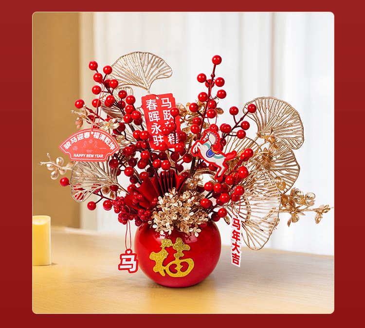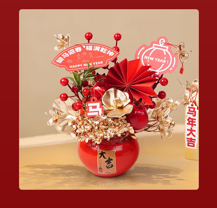 马年新品年宵花成品送客户春节发财果福桶摆件F026A0
