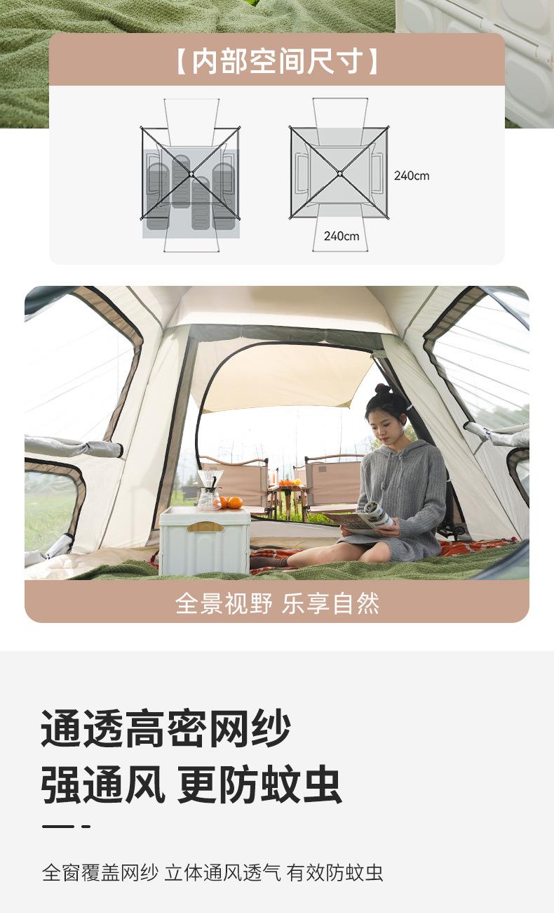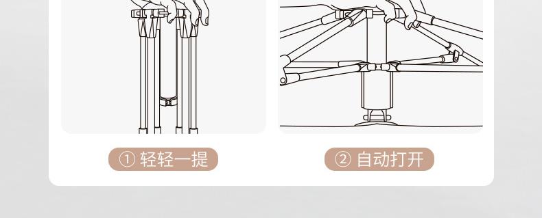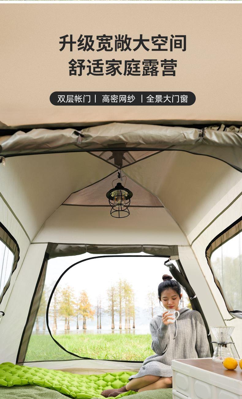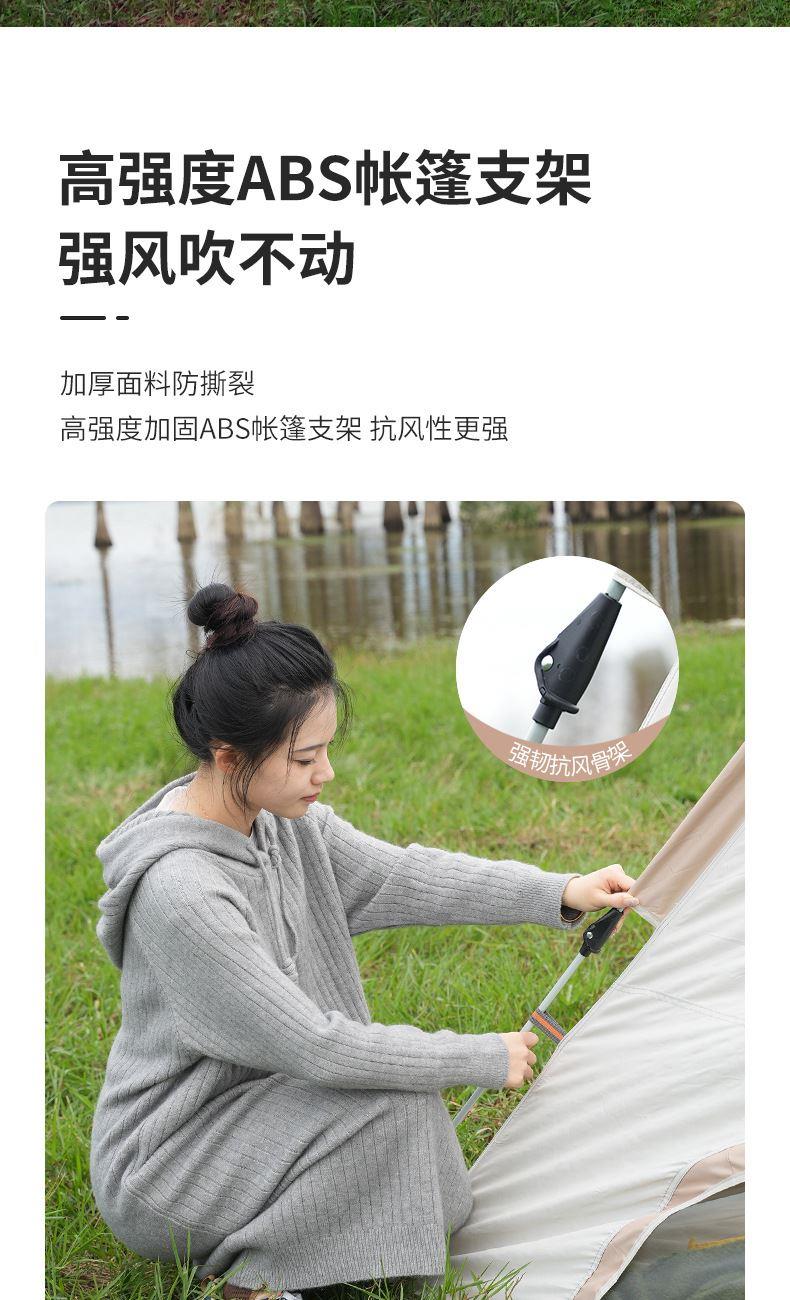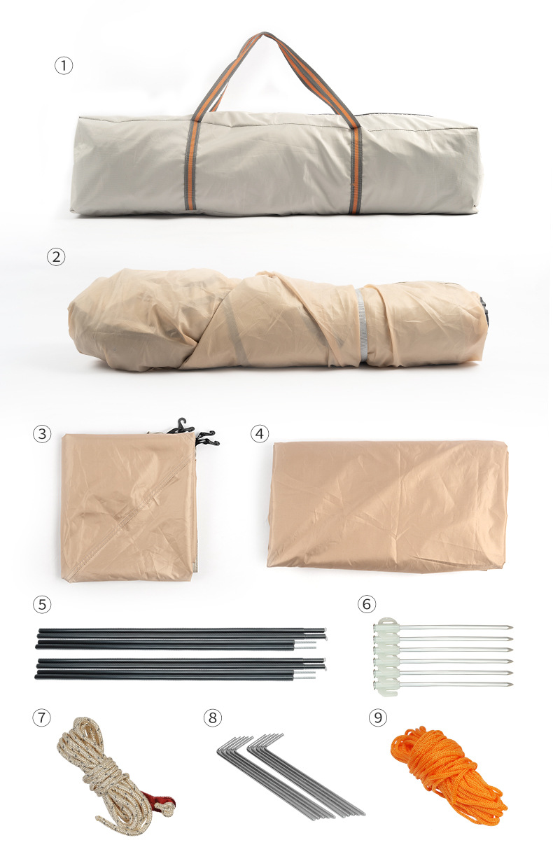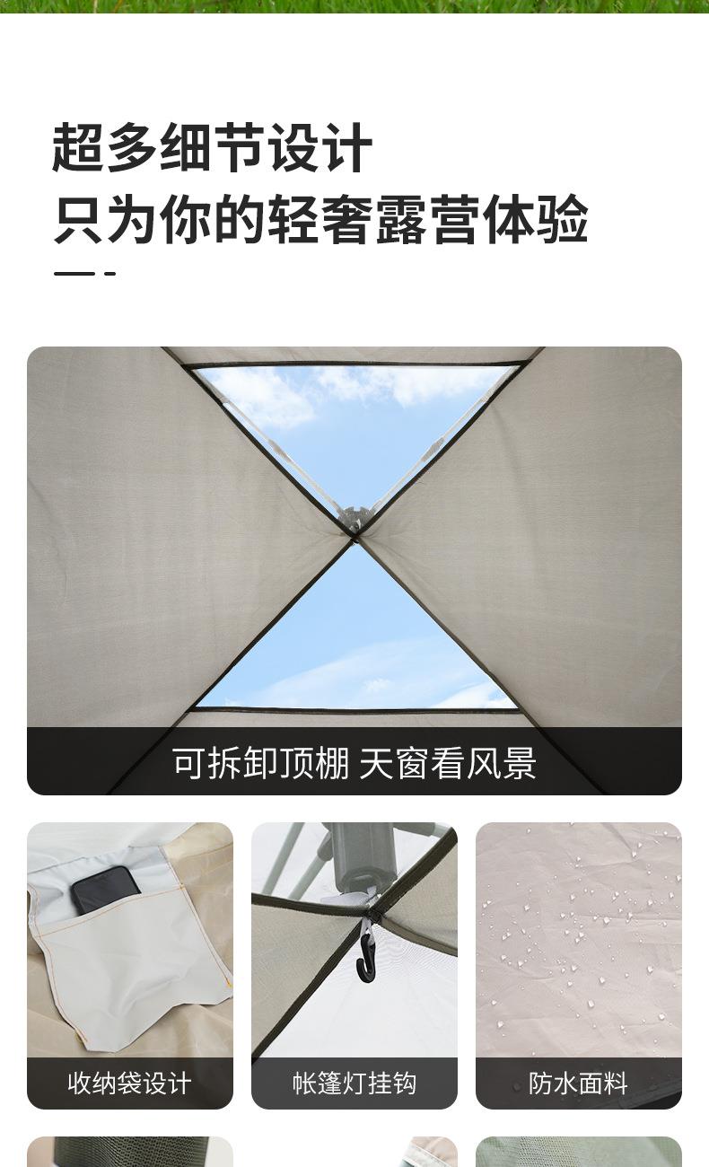 材质:高密B3网纱+玻璃纤维杆 +210D防水牛津布 帐篷尺寸:240*240*155cm 天幕尺寸:270*330*210cm 颜色:米色 净重:7.5kg 1、创意设计天幕帐篷二合一; 2、高颜值,加大空间; 3、自带收纳袋,简单便携; 4、210D防水牛津布,涂银防晒; 5、速开帐篷,轻便天幕搭建,睡眠休闲模式自由切换