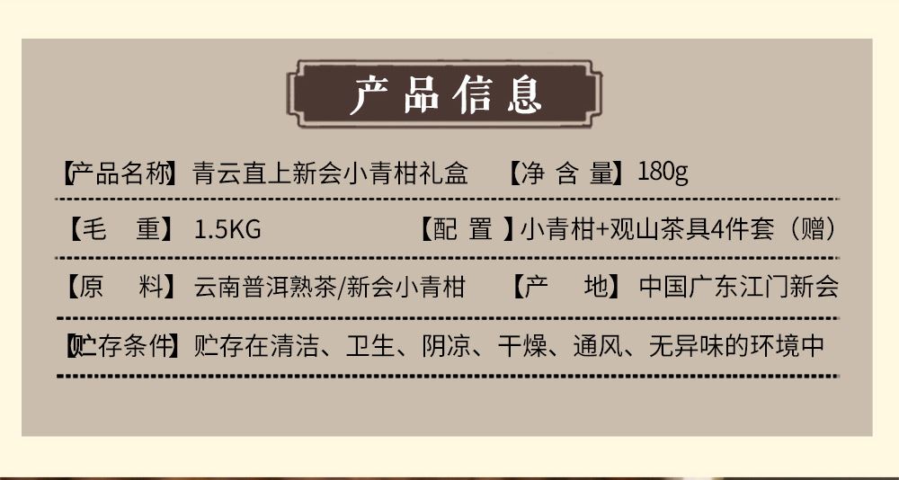 配置:天马核心产区柑皮+云南勐海熟普+观山茶具4件套(赠)