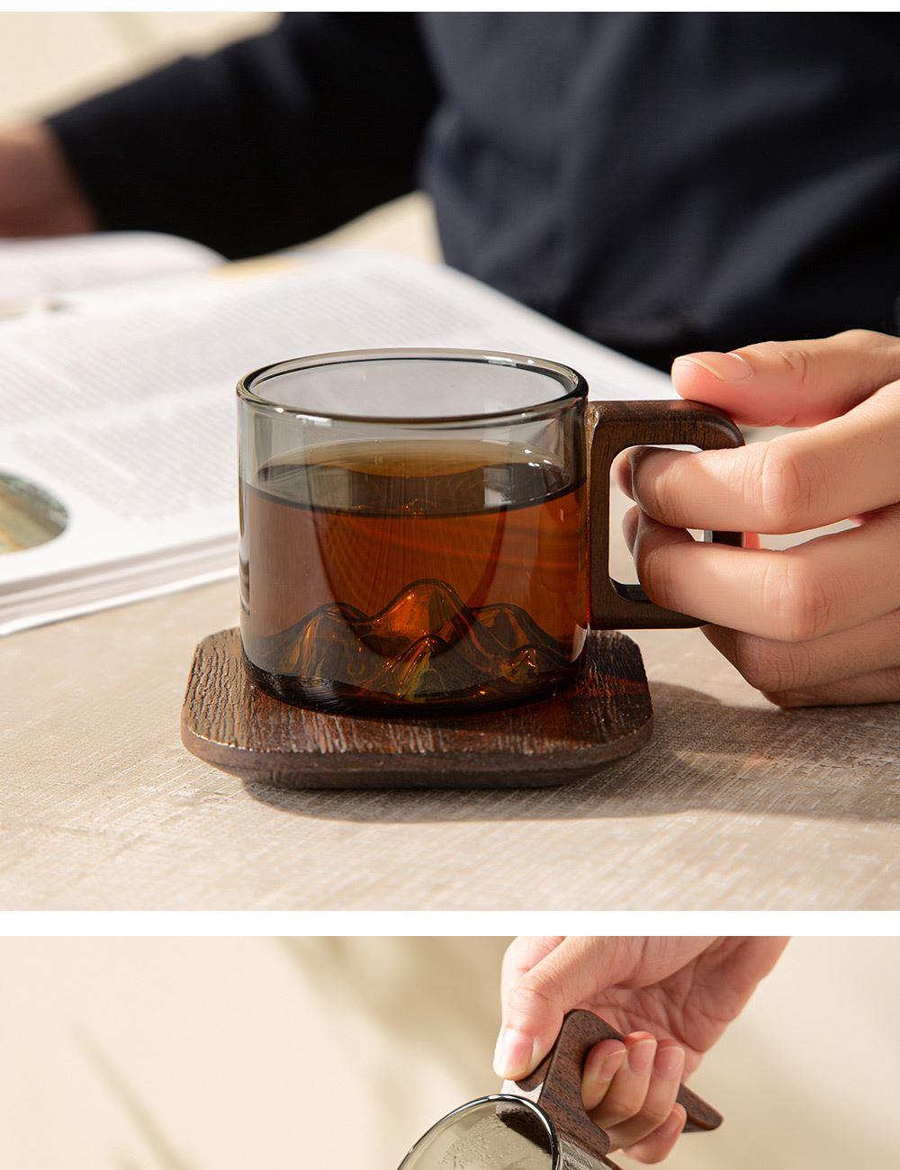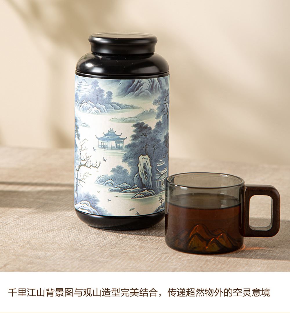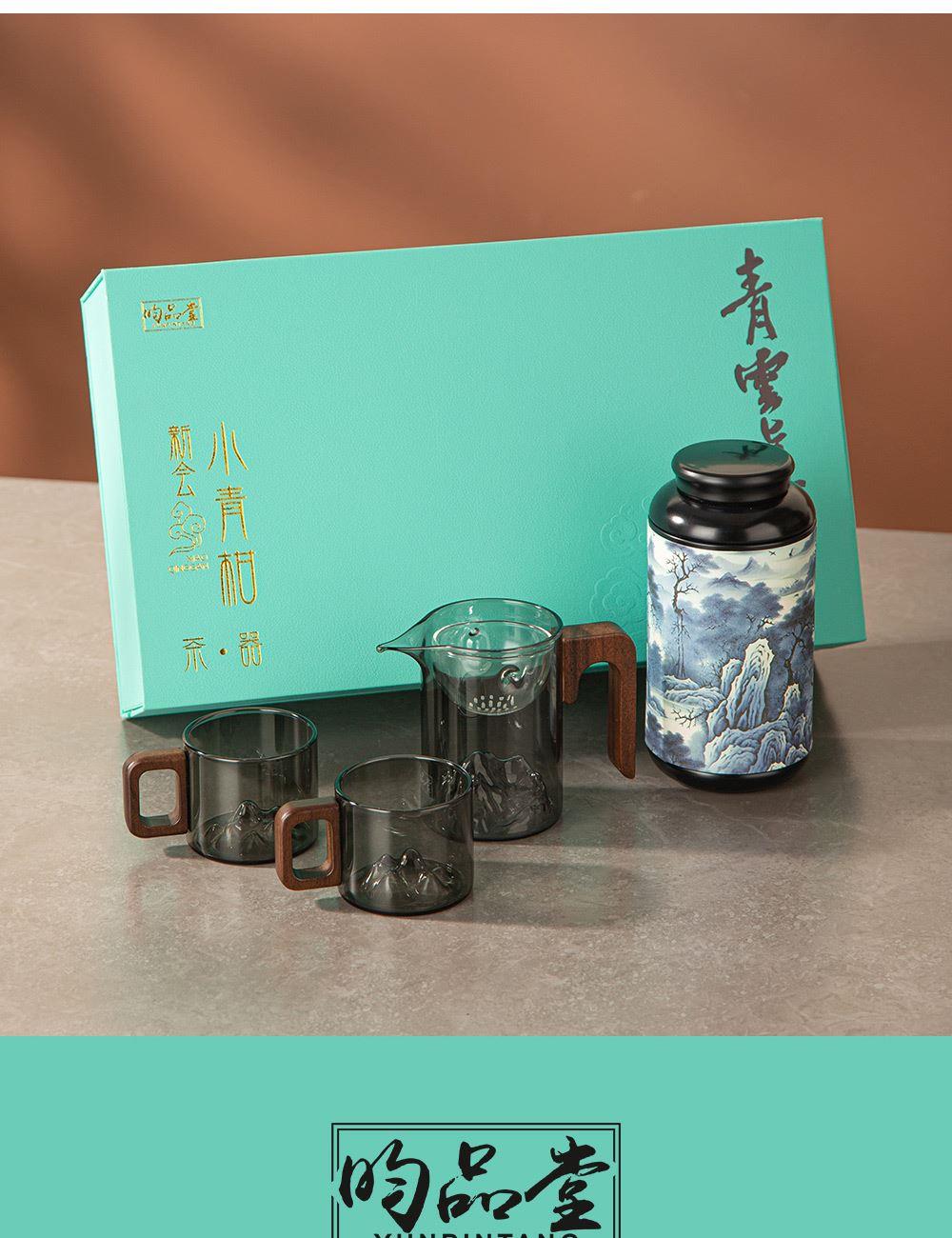 6.礼盒赠配小青柑专用泡茶壶与把手茶杯,杯内有观山造型设计,采用高硼硅耐热玻璃,实用且赏心悦目。