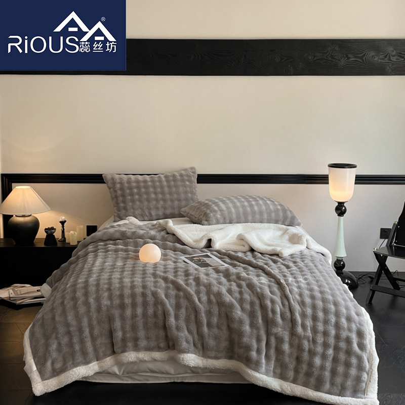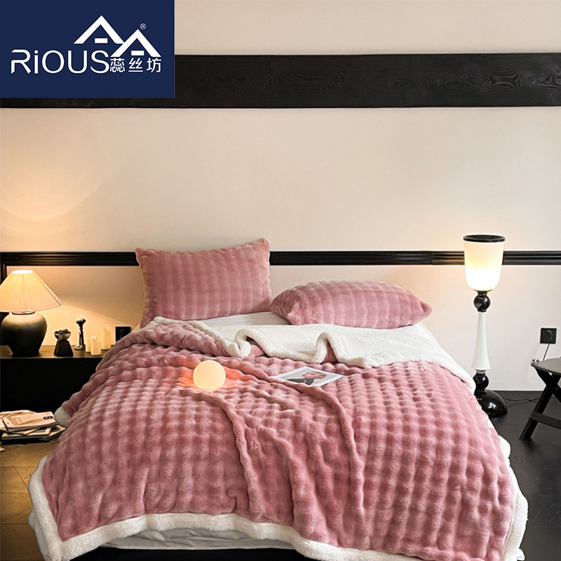 蕊丝坊家纺泡泡羊羔绒兔毛毯150*200cm