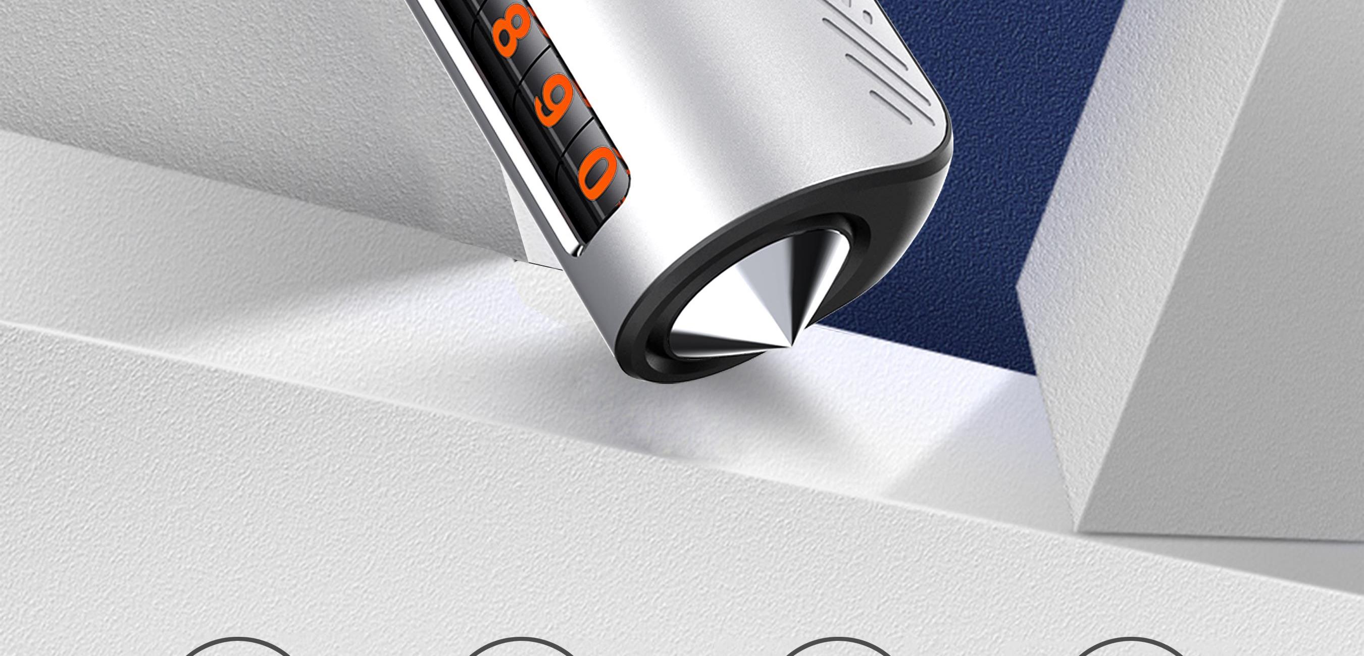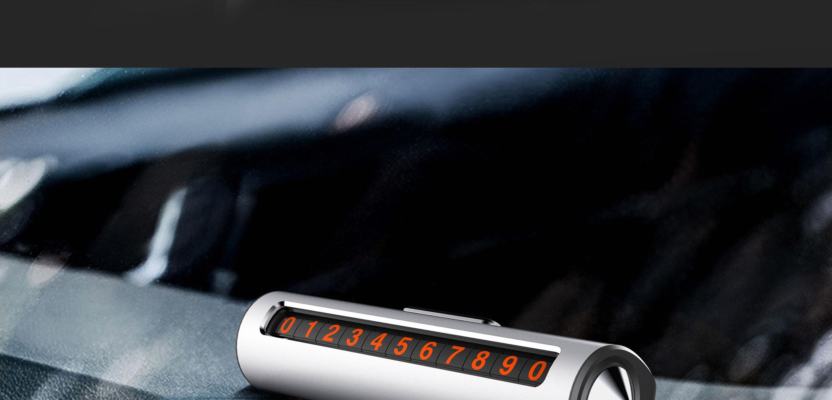 铝合金三合一多功能滚筒数字停车号码牌 颜色:红色 银色 黑色 灰色 材质:金属+ABS 尺寸:130*40*40mm 包装:彩盒 【功能特点】: 金属铝合金材质,号码清晰 滚轴式数字设计,方面使用 钨钢高强度破窗器 隐藏式不锈钢安全带割刀 手机号码一键隐藏