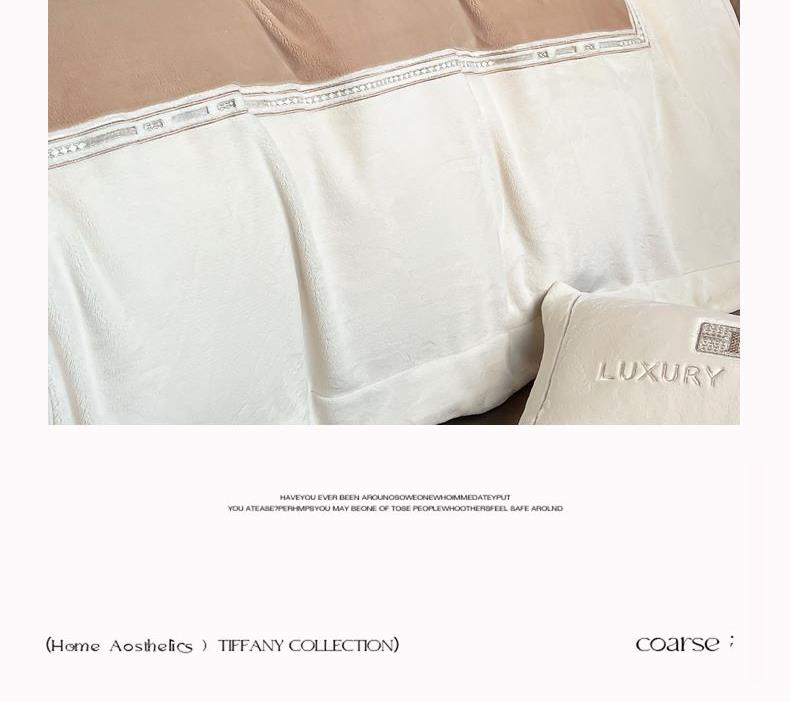 被套:200*230cm 床单:250*260cm 枕套:48*74cm*2 面料:冰岛绒 产品包装:精美礼盒 包装尺寸:50*40*20cm 1.冰岛绒面料结构蓬松,能够留存大量静止空气,具有出色的保暖效果。提供温暖舒适的体验。 2.面料手感非常柔软,接触皮肤时感觉细腻顺滑。 3.具有自然、柔和的光泽。且面料绒毛丰满,质感十足,大气。