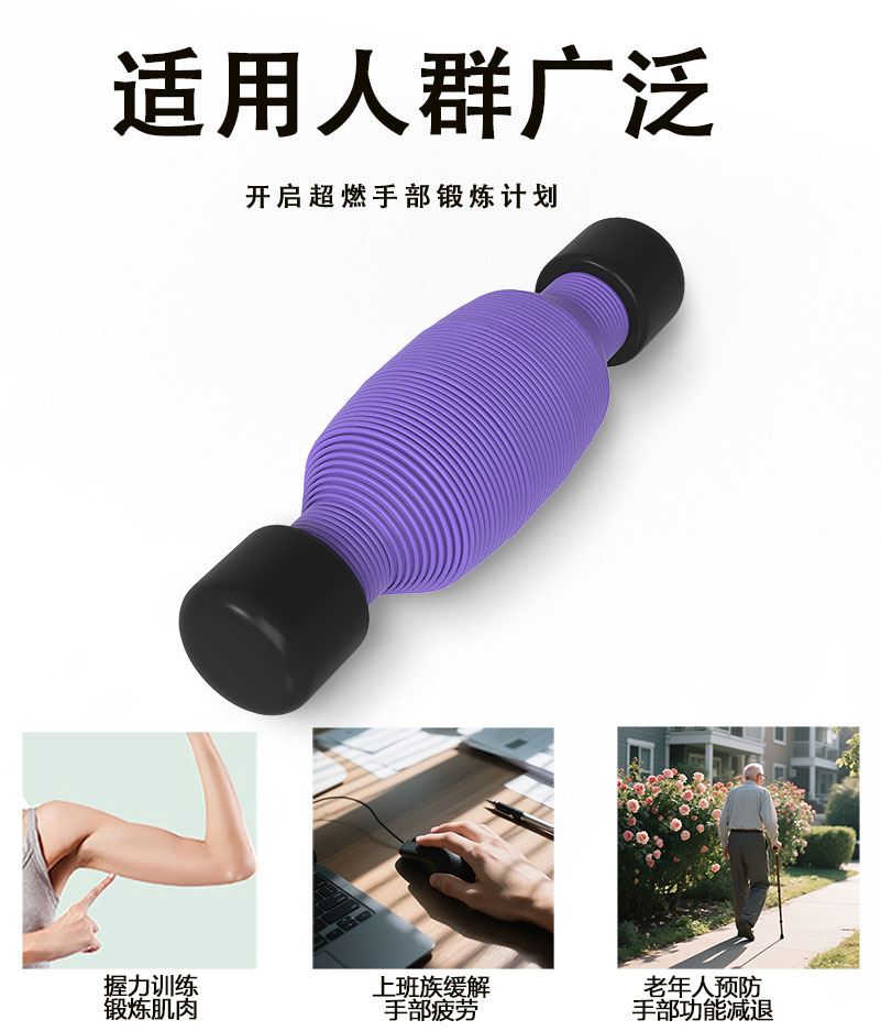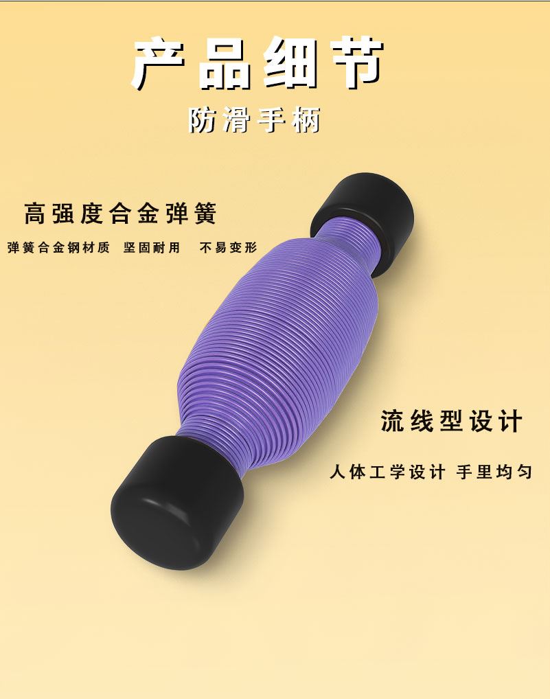 材质 高强度合金弹簧 颜色 香芋紫 尺寸 25*46*160mm 重量 净重113g,毛重178g 采用特殊合金弹簧,不易变形、不易疲劳,使用寿命远超普通弹簧 回弹较准,提供稳定、一致的手感反馈,每一次挤压都扎实有力,训练更高效 告别沉闷的黑色/灰色,温柔的香芋紫,瞬间提升辨识度 无需复杂调节,拿起即练,强化手部力量(办公室、家中、旅途皆可)