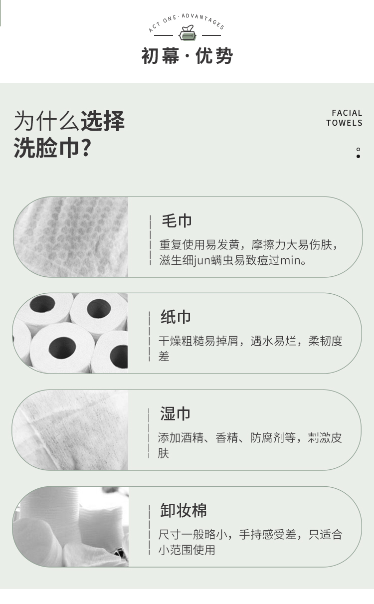 干湿两用:湿用可深层清洁,干用方便快捷,卸妆、洁面一巾搞定