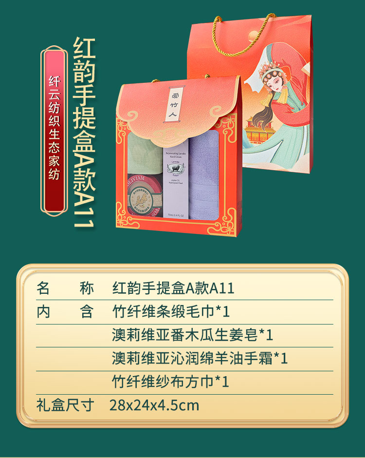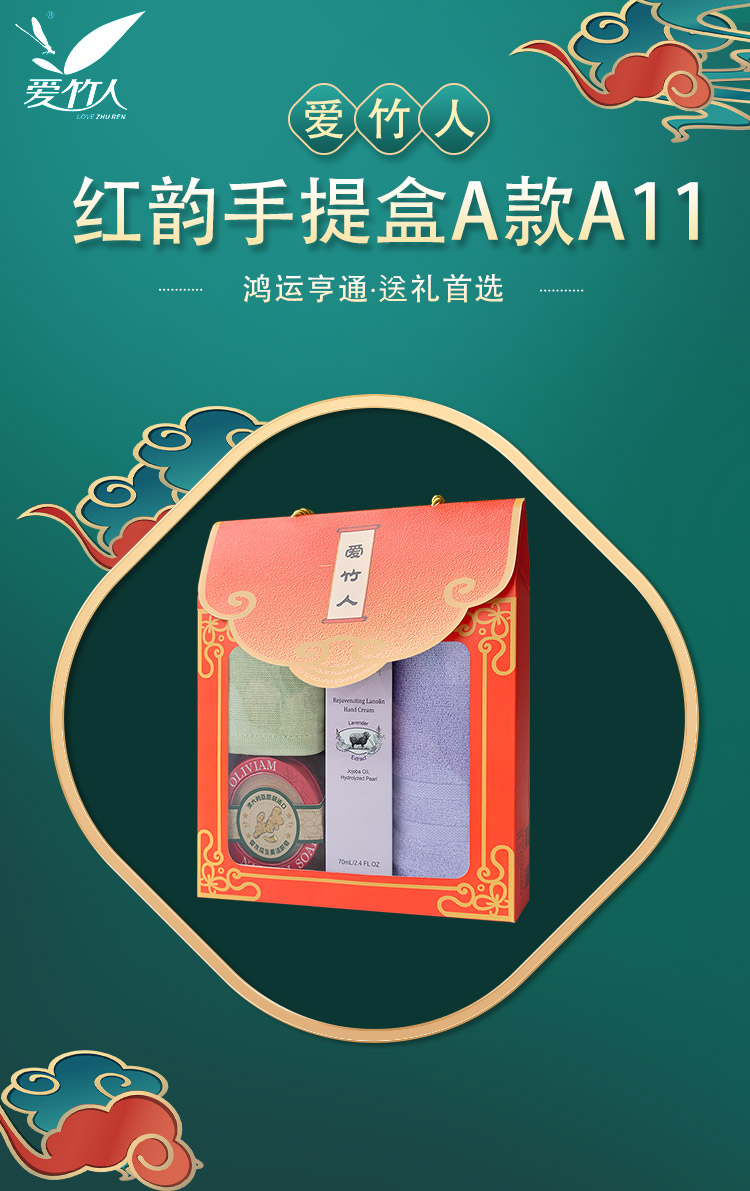 爱竹人红韵礼盒毛巾方巾生姜皂护手霜4件套A11