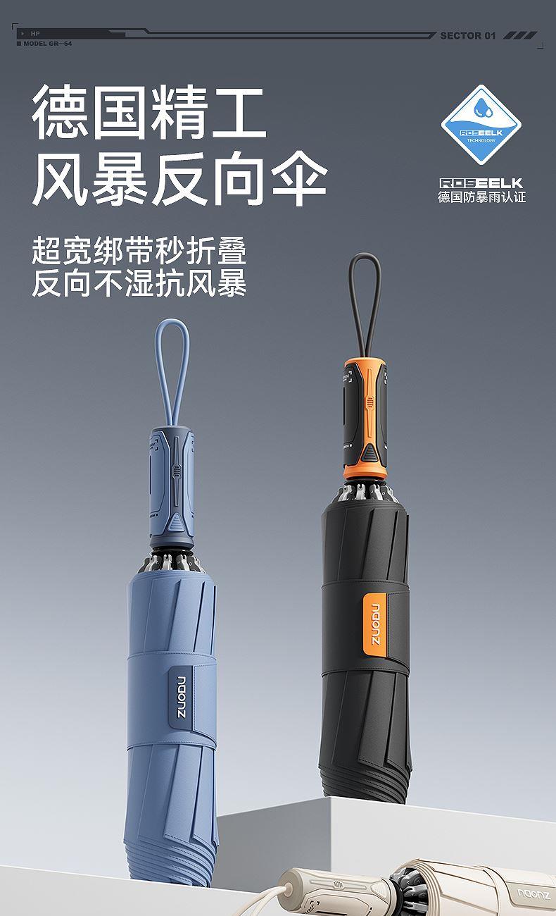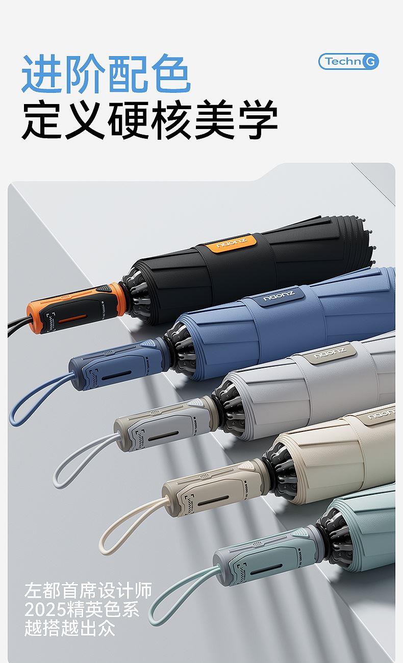 左都ZD2587赛博科技安全式自动三折折叠雨伞