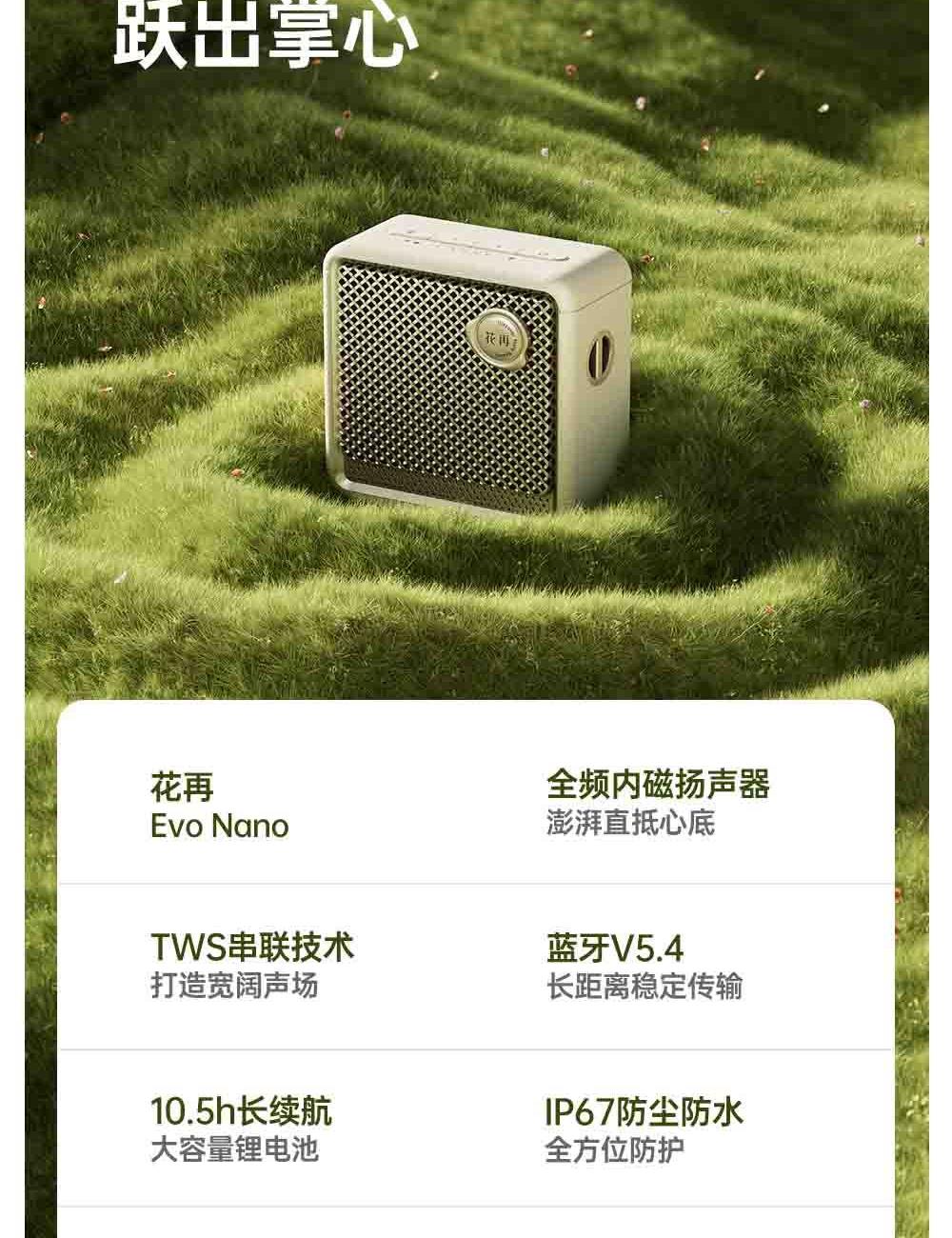 全频内磁扬声器,够澎湃,够炸场 TWS串联,环绕立体声 多种灯效模式,满足多场景使用需求 IP67防尘防水,户外无惧风雨 免提通话,一键接听 双设备连接,轮流切换音乐 智能APP,掌上音乐管家