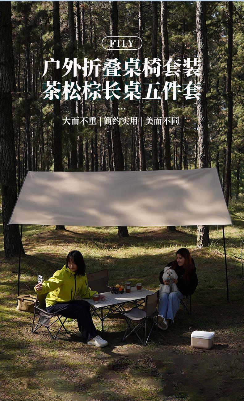 FTLY飞图乐茶松棕-折叠桌椅长桌五件套ZDZY1602