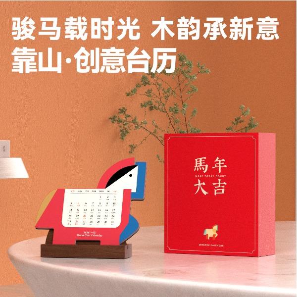 马年大吉胡桃木台历/手机支架