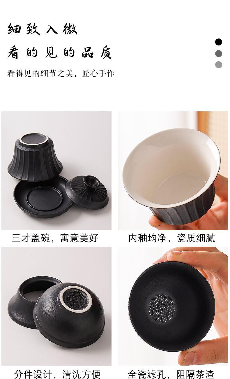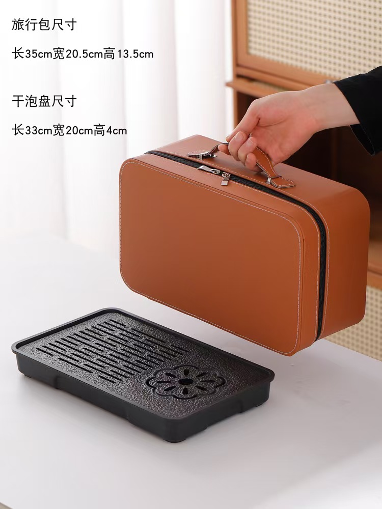鹏翼黑陶陆宝茶盘旅行茶具套装