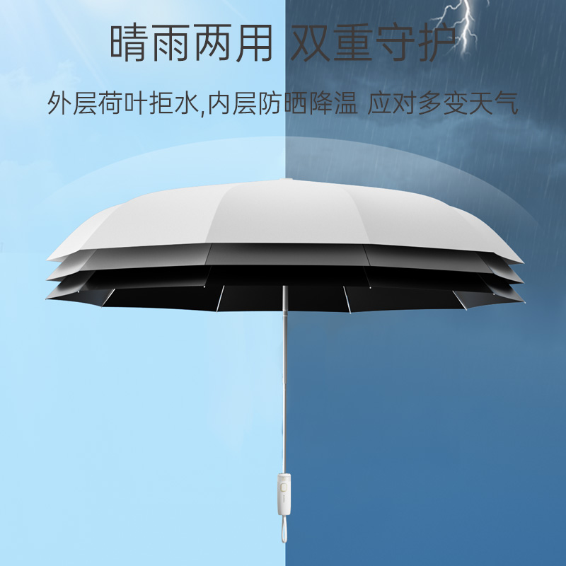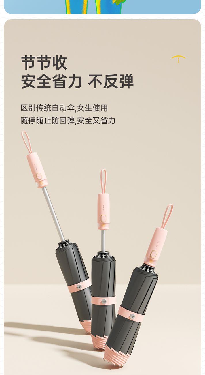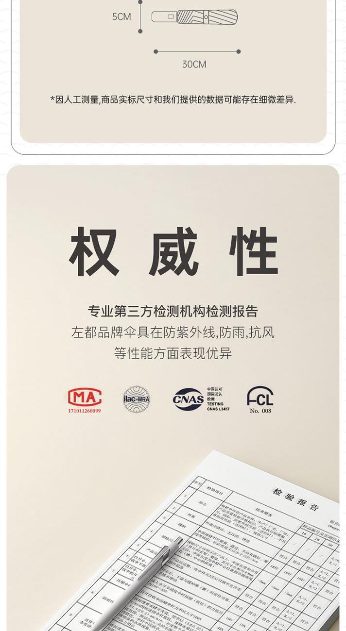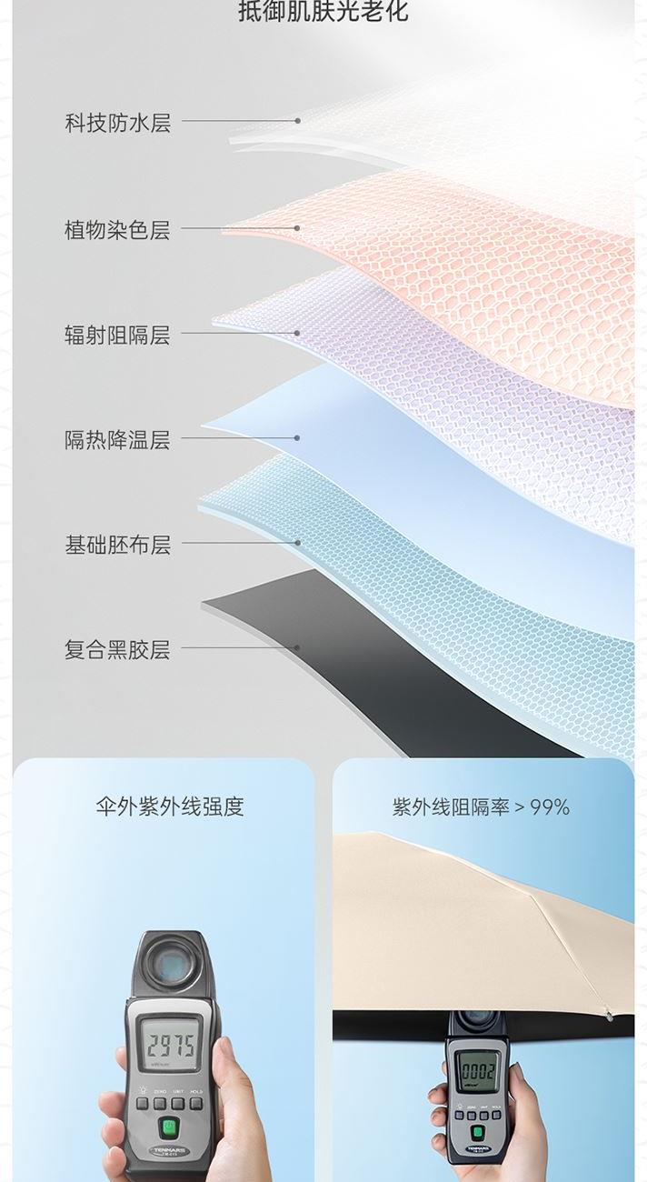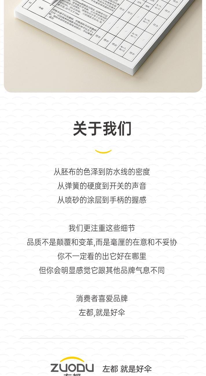 商品货号:ZD149 伞架材质:铝合金,玻纤,不锈钢中棒 伞面材质:280T抨击布 款式:全自动三折晴雨伞 商品参数:直径:105cm 高度:65cm 收拢直径:5cm 收拢高度:30cm 商品毛重:550 商品颜色:米咖色(黑胶) 雾霾蓝(黑胶)初桃粉(黑胶) 木槿紫(黑胶)米白色(黑胶) 晨雾绿(黑胶)星空黑(黑胶) 商品包装:本布伞套