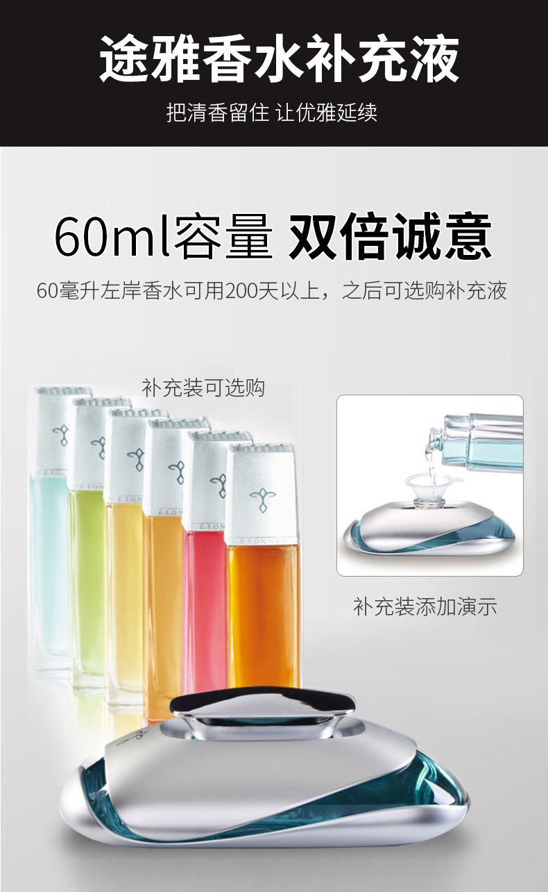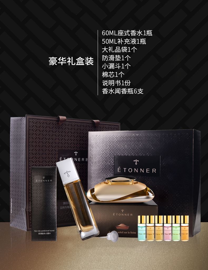 锌合香水座+60ML香水+50ML补充液+纳米防滑垫+棉芯 1个+精美礼盒手袋