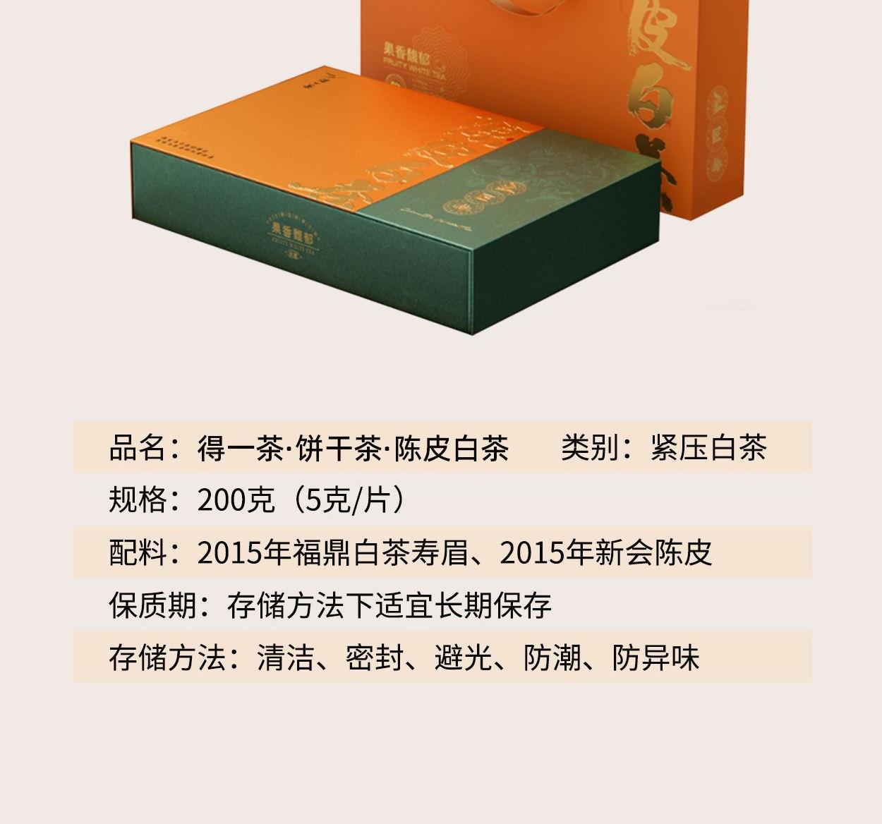 产品规格:陈皮白茶200g(5g*40片) 产品尺寸:20*18*10cm 保质期:18个月 截单时间:每天16:00