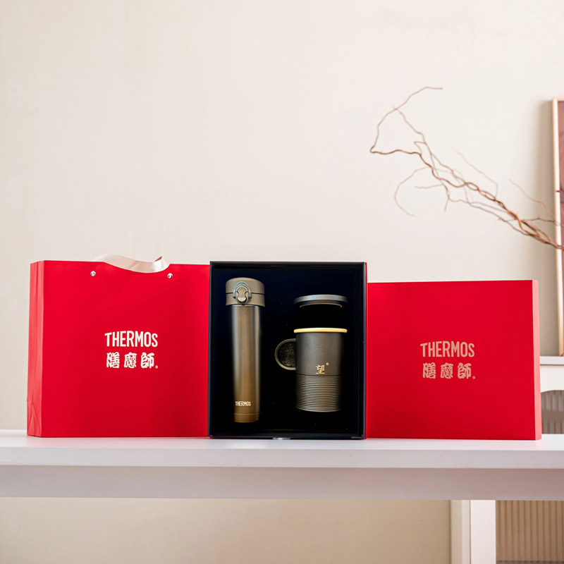 品 牌:膳魔师+万仟堂 颜 色:保温杯:黑色 灰色 红色 白色 万仟堂望:黑铁釉 容 量:保温杯:500ml 万仟堂:1杯1滤 组 合:颜色随机组合 【接受定制】 定 制:可以根据客户要求定制,杯身及礼盒加LOGO 配 置:精美手提袋,精装礼盒,可根据要求增加贺卡等