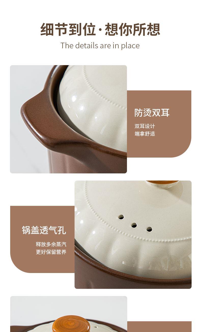 【型号】LPB-QXTC3500 【材质】陶瓷 【规格】3.5L 【包装方式】彩盒 【外箱尺寸】290*220*290mm 【重量】3.5kg 【条码】6957929941232 【配置】3.5L陶瓷煲*1 每一口都是自然的馈赠,养生砂锅,炖出食材的原汁原味。采用天然陶土,经过匠心工艺,耐高温,保温强,锁住营养不流失。。 不论是炖汤、煮粥还是焖菜,都能轻松驾驭,美味又健康。给你和家人贴心的关怀,让每一餐都充满爱的味道。 可放心放入烤箱、微波炉和洗碗机,注,电磁炉不可用。