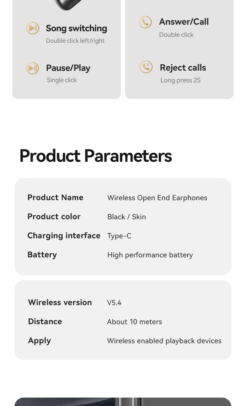 铝合金圆形360度旋转商务耳机 型 号: M114 产品颜色:黑色、肤色 带包装重量1PCS:128.8g 外箱尺寸:48.5*41*25CM 整箱数量:100 PCS 整箱重量::14 KG 耳机尺寸:5.3*4.8*1.2CM单耳重量:7.5 g 机仓尺寸!7*6.4*3.3CM 彩盒尺寸:11.5*9.2*4cm 裸机重量:72.6g 【功能特点】: R案:蓝讯5756C蓝牙版本:V5.4支持协议:A2DP,AVRCP,HFP传输距离:10米耳机电池:500815-40毫安机仓电池:602030-300毫安(带保护板)喇叭尺寸:F13真铜环