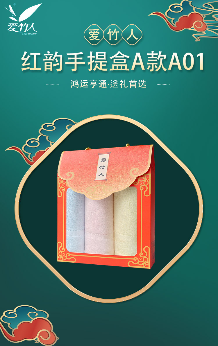 爱竹人竹纤维迷你毛巾红韵礼盒3条装A01