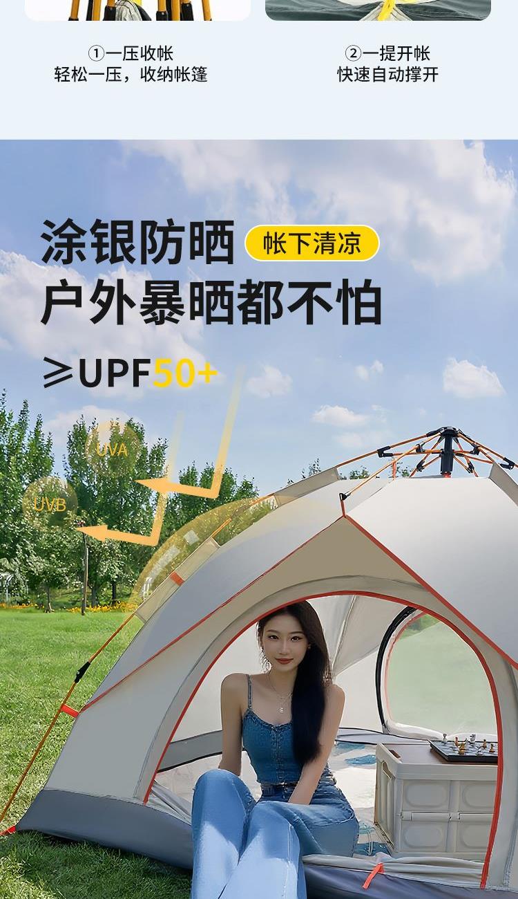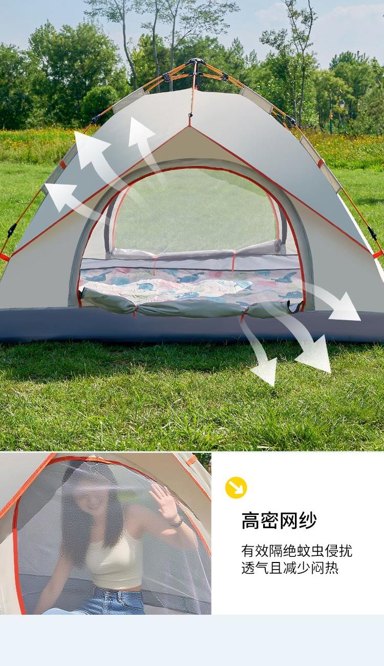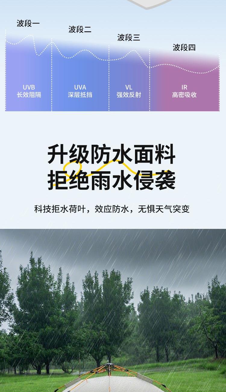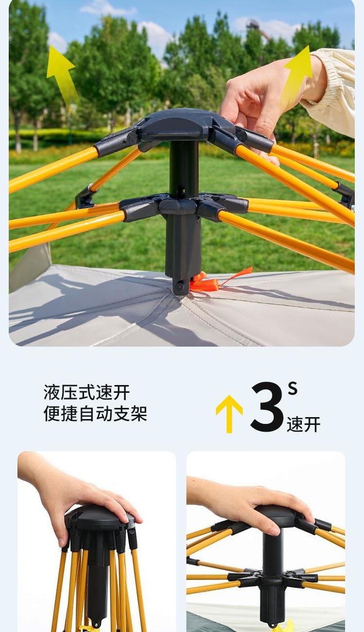 产品材质 210D牛津布 产品重量 1.9KG 产品尺寸 展开尺寸:200x150x125cm收纳尺寸:66x15x15cm 产品配件 收纳袋、防潮垫、地钉*4、风绳*4