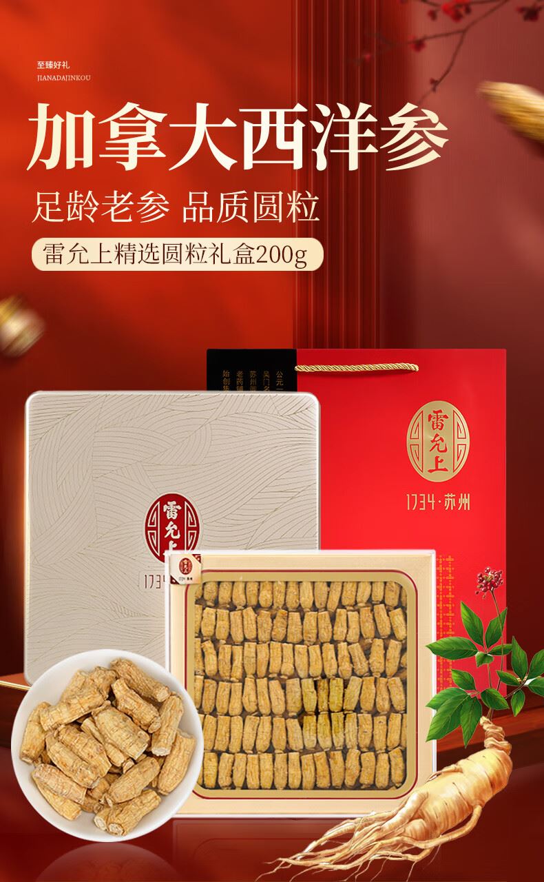 雷允上加拿大西洋参200克0.8克排粒礼盒
