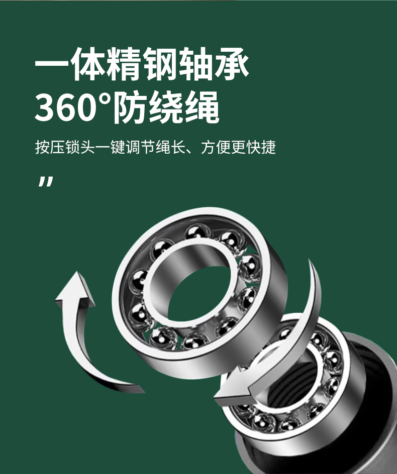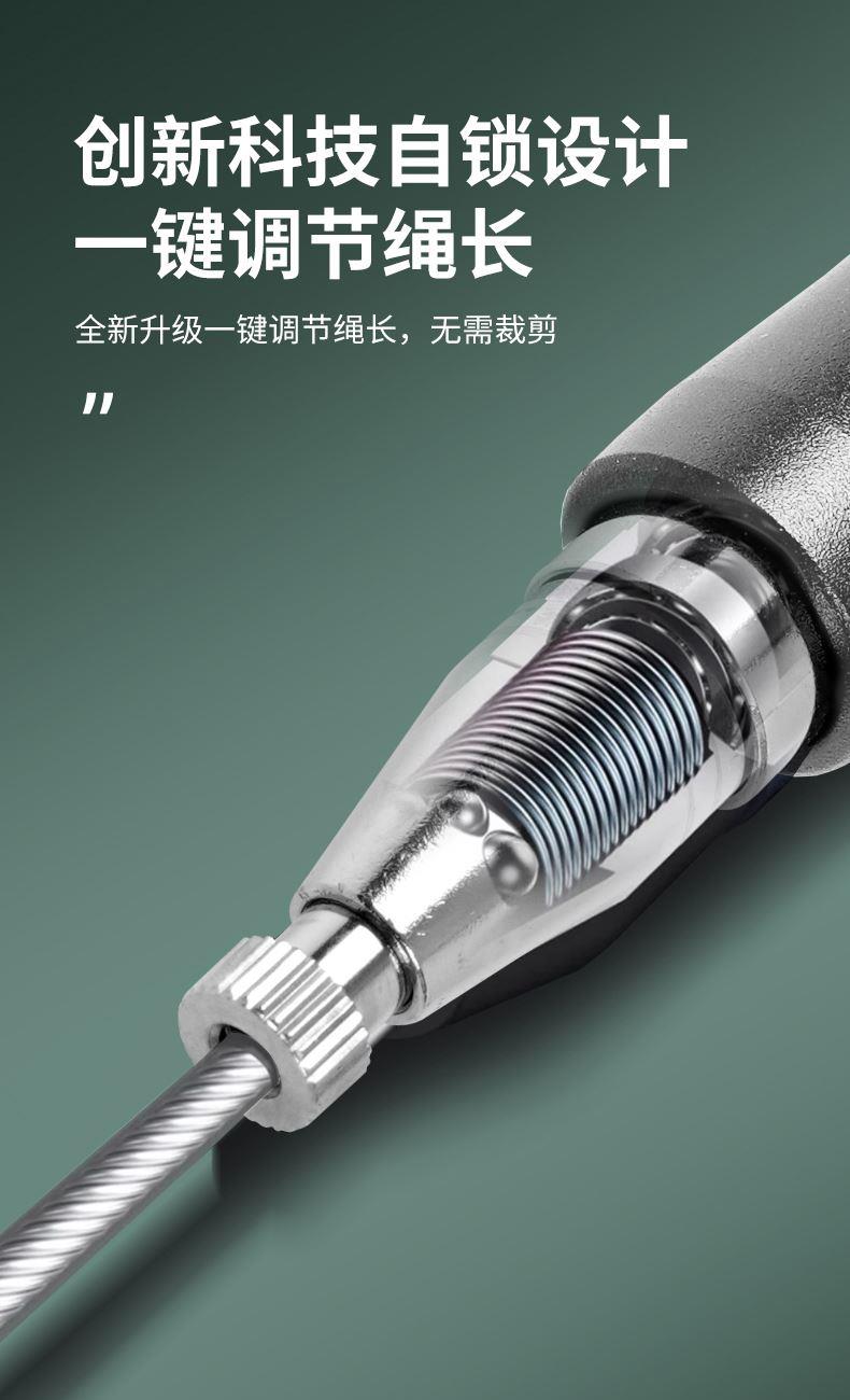 军工级强度, 49股高碳钢丝芯提供抗拉强度,耐暴力抽打、抗变形,寿命远超普通跳绳