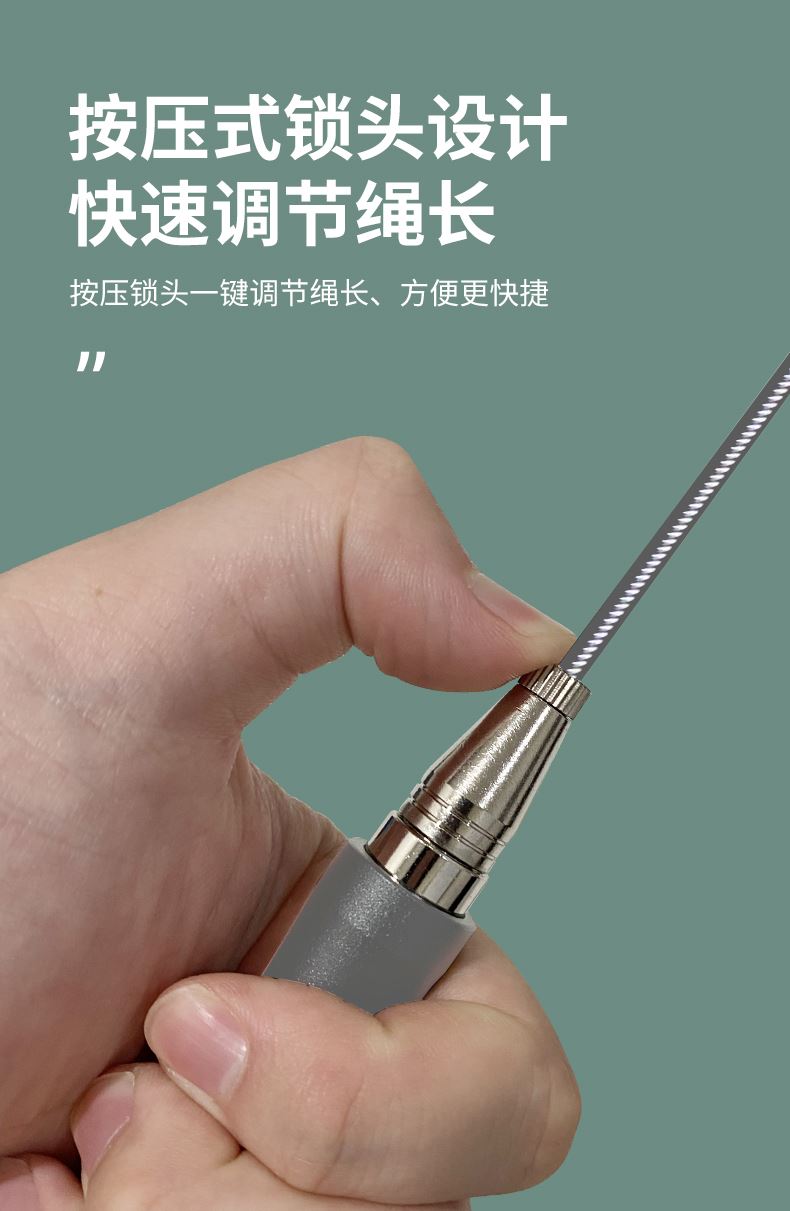 双重防护,绳外层包裹高弹TPU,防锈蚀、抗磨损,同时保护地面(不伤地板)和皮肤(抽打不剧痛),兼顾性能与安全