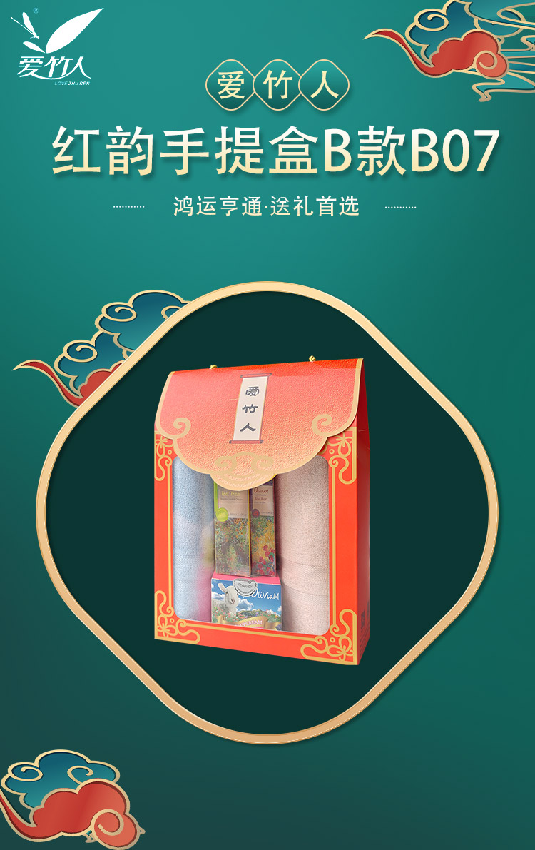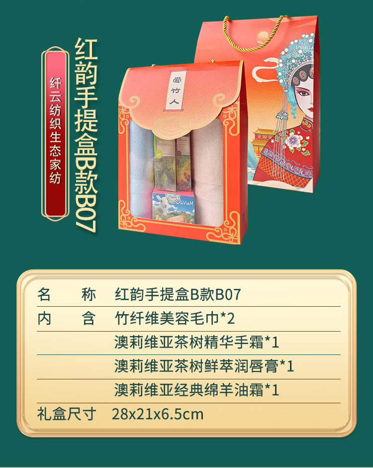 爱竹人红韵礼盒毛巾护手霜唇膏绵羊油5件套B07