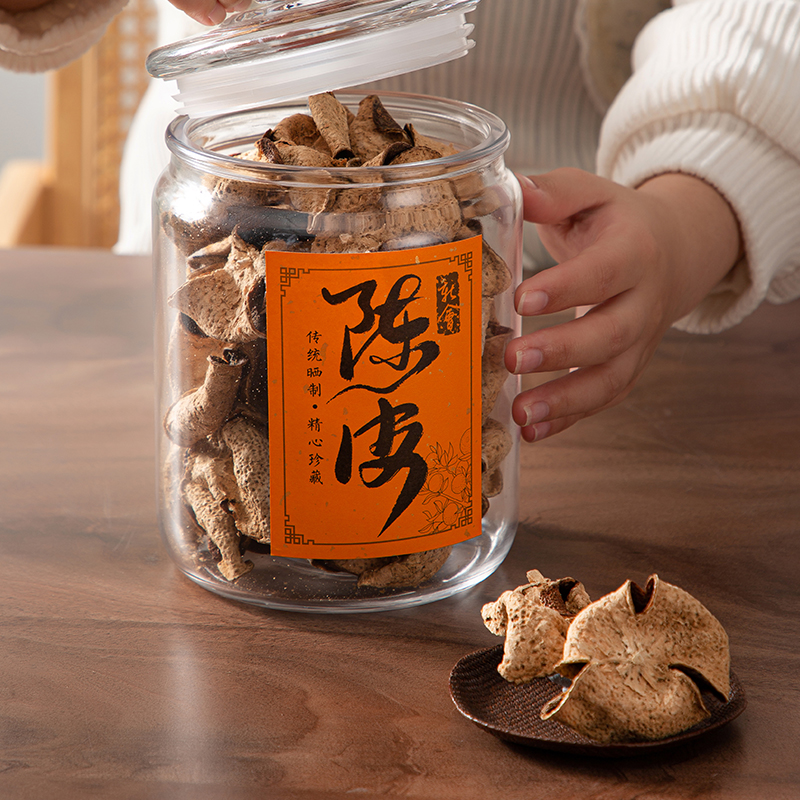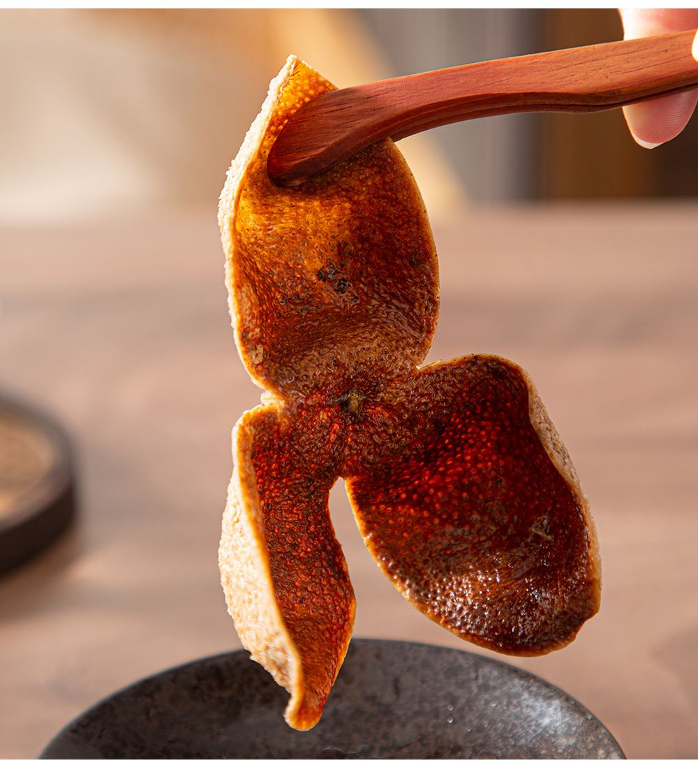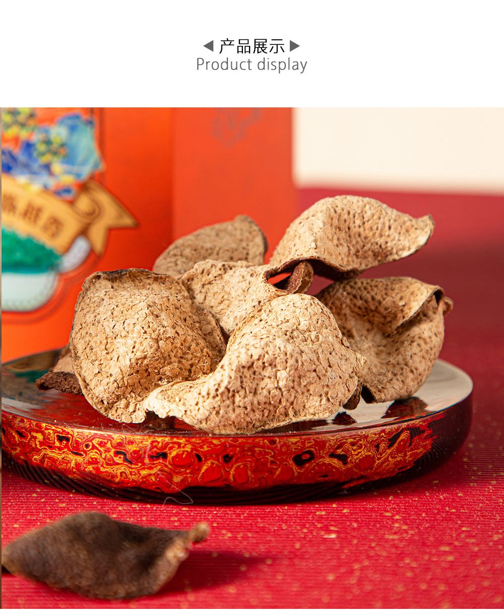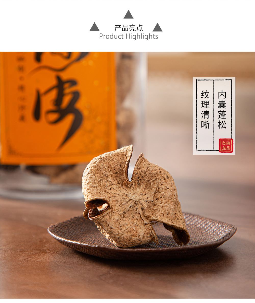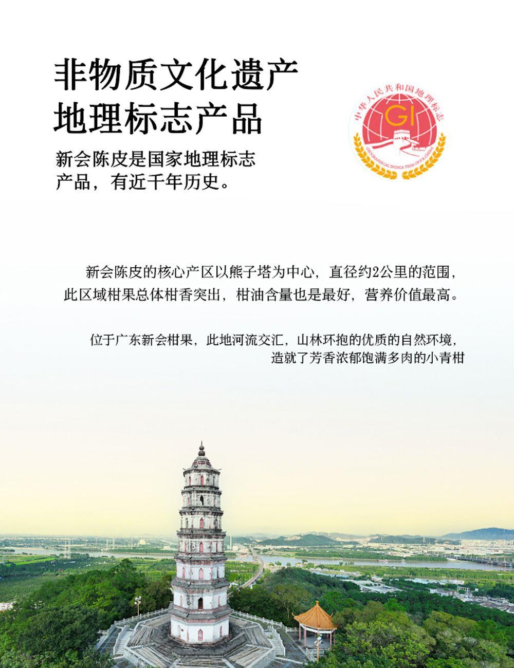 产地:广东新会 原料:新会产区二红皮 净含量:100g 毛重:1.5KG 特点:干仓陈化,药香二红皮,香气浓郁,口感清甜回甘 1.采用广东新会产区茶枝柑“二红皮”10年陈化原料 2.从采收,洗选,开皮,翻皮到晒皮贮存与陈化等每一个环节都坚持人手工制作,精心挑选。 3.礼盒+玻璃密封罐结合设计,质感满满,更易保存收藏 4.药香二红皮,香气足,回甘快,口感清凉,且非常适合后期保存陈化和应酬多的人群饮用。 5.陈皮需要存放在阴凉干燥处,避免潮湿环境。