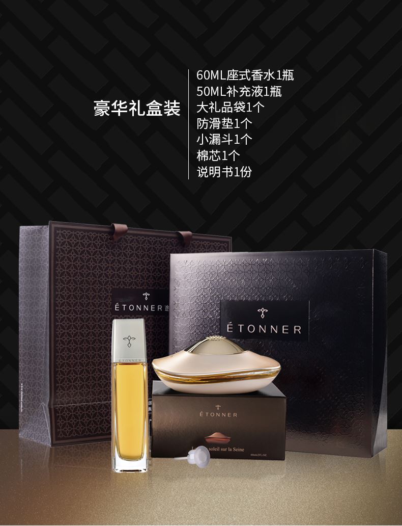 塞纳日出真我是基于备受青睐的迪奥真我香水味道调制而成,将花香的清新与果香调的甘美美集于一身,并结合了性感的木香,让香调变得强烈而高雅。金色,女性气质的象征,现代优雅,明亮感性!时尚浪漫的造型结合高雅强烈的木香,激情而神秘,流露出浓郁的女性真我本色。 香水座+60ML香水+50ML补充液+纳米防滑垫+精美袋 5种香型: 琥珀男士A、 古龙C、 海洋O、 真我D、 自由之翼F