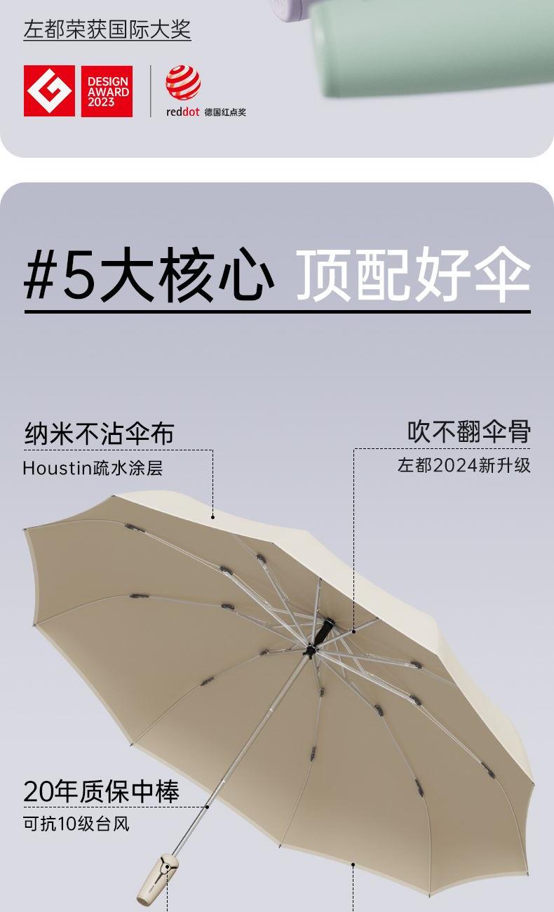 商品货号:ZD143 伞架材质:不锈钢,玻纤,不锈钢中棒 伞面材质:280T抨击布 款式:全自动三折晴雨伞(23寸/25寸) 商品参数:直径:105cm /115cm 高度:63cm 收拢直径:6cm 收拢高度:33cm/35cm 商品毛重:420克/470克 商品颜色:米咖色 迷雾灰 星空黑 雾霾蓝 晨雾绿 木槿紫 淡雅红 石墨灰 商品包装:本布伞套