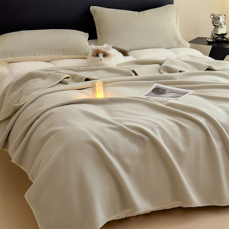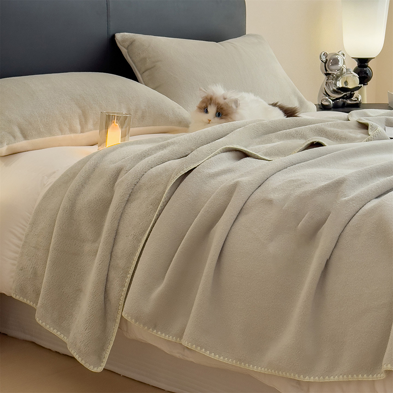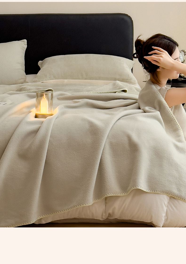 规格:180*200cm 面料:獭獭绒 克重:1100g 产品包装:精美礼盒 包装尺寸:48*35*16cm 1.獭獭绒面料纤维细腻蓬松,触感柔软、顺滑亲肤。 2.面料柔和细腻,保暖性突出,轻盈不压身,盖在身上无压迫感。
