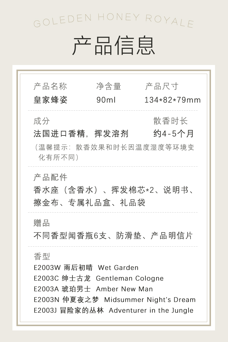 标配:瓶内90ML香水+赠帝王蜂项链或领扣