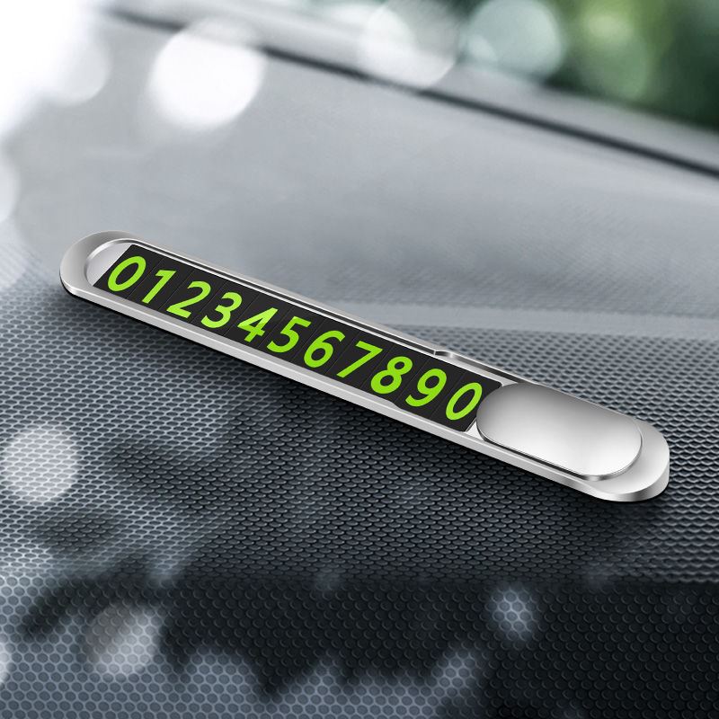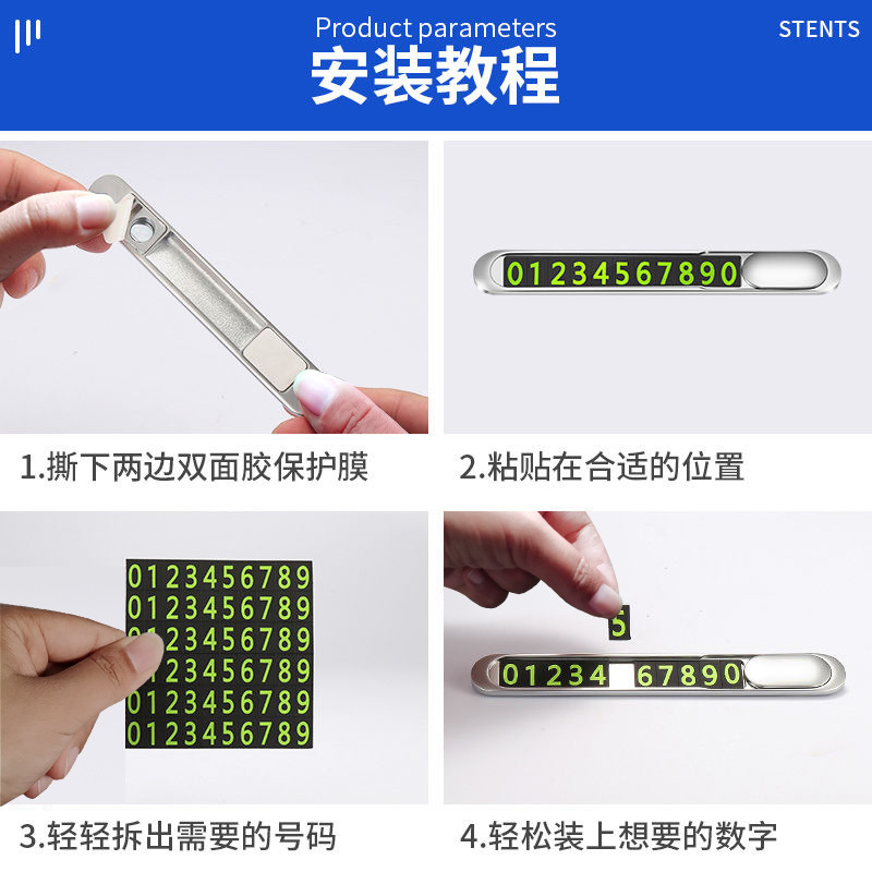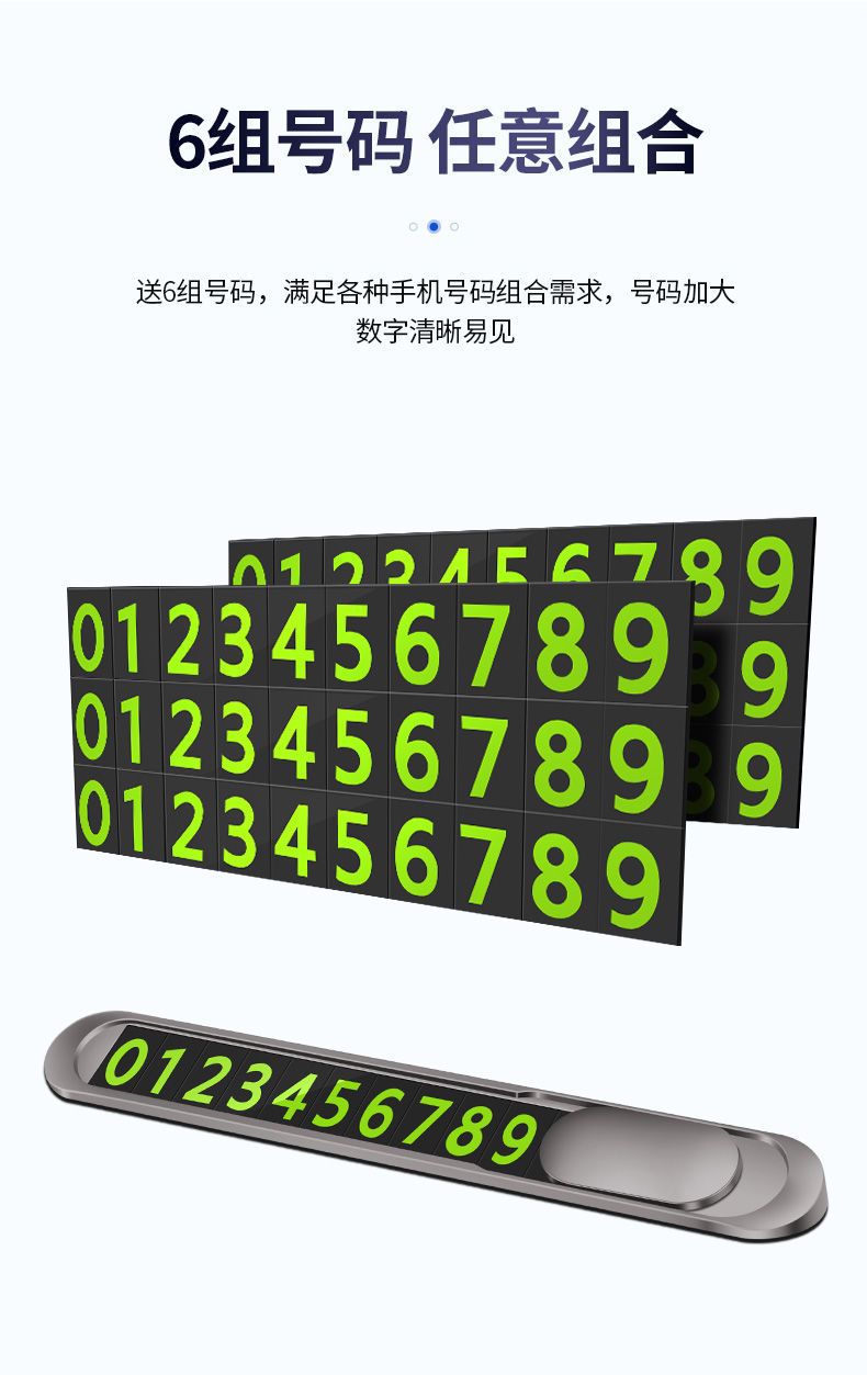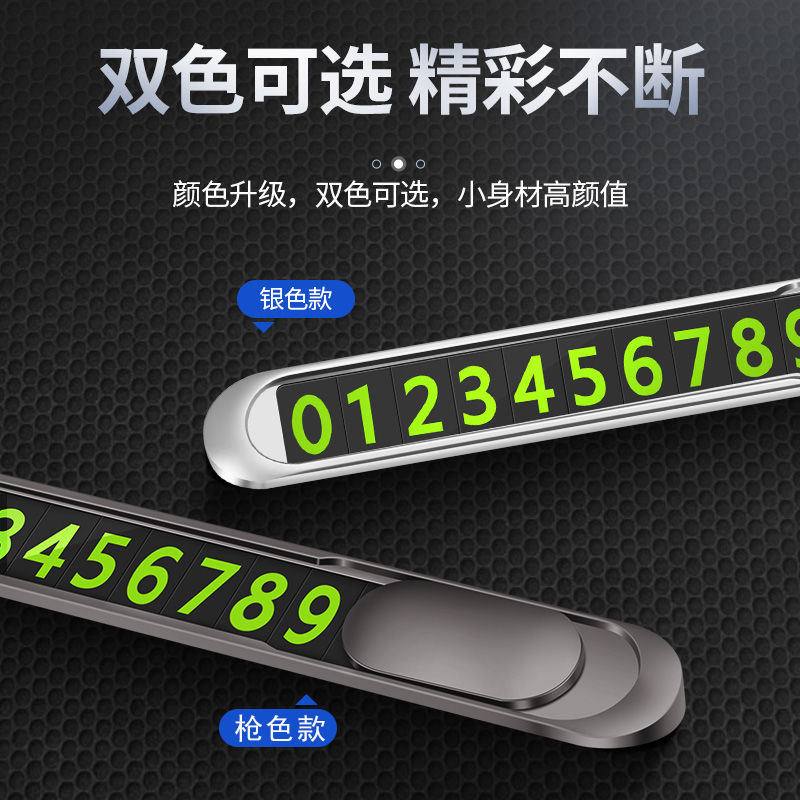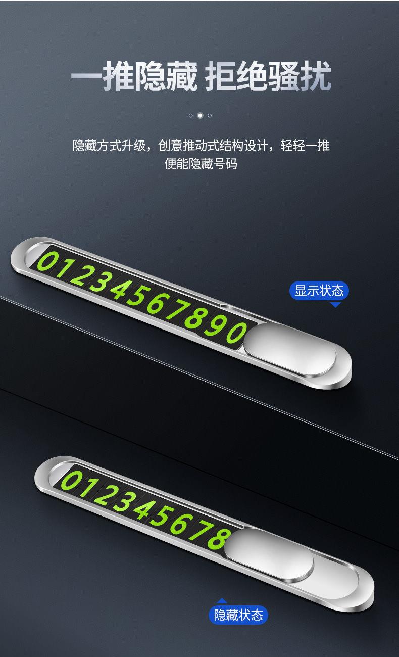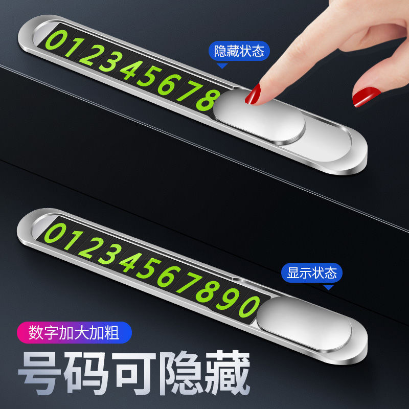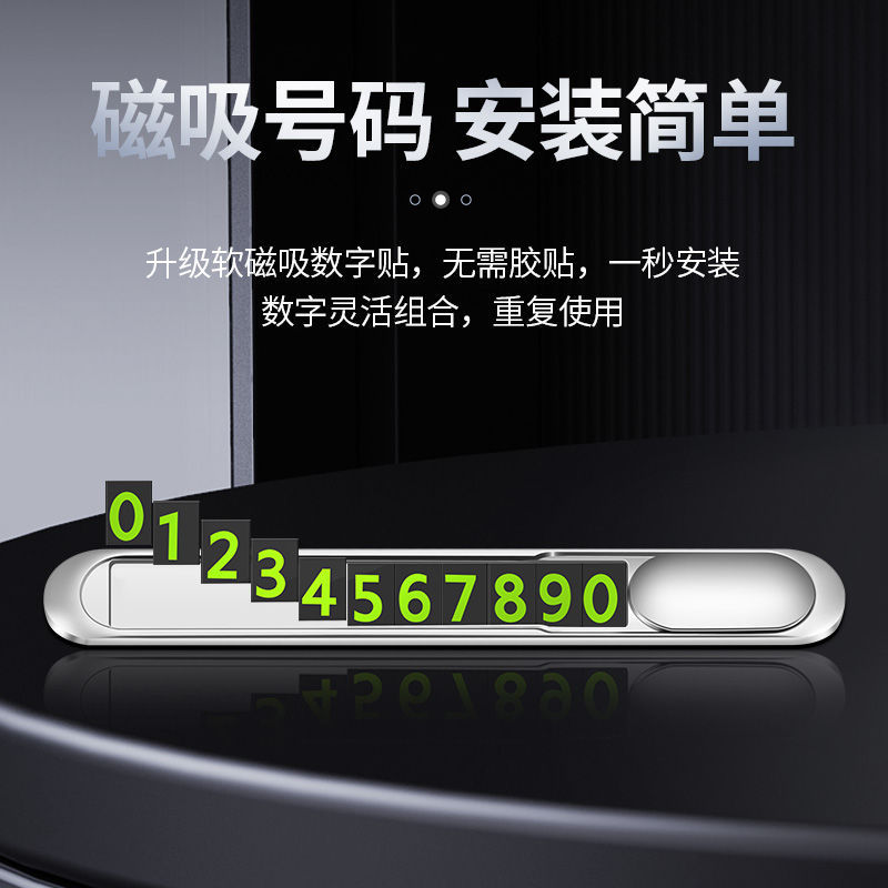 锌合金磁吸金属停车号码牌 颜色: 银色 灰色 材质:金属+硅胶磁吸数字贴 尺寸:12.5*12mm 包装:红色彩盒 【功能特点】: 锌合金金属材质大气上档次 6组夜光数字牌+底部贴两个泡棉胶 磁吸隐藏式把手一键隐藏 手机号码清晰可见
