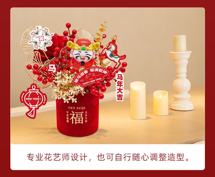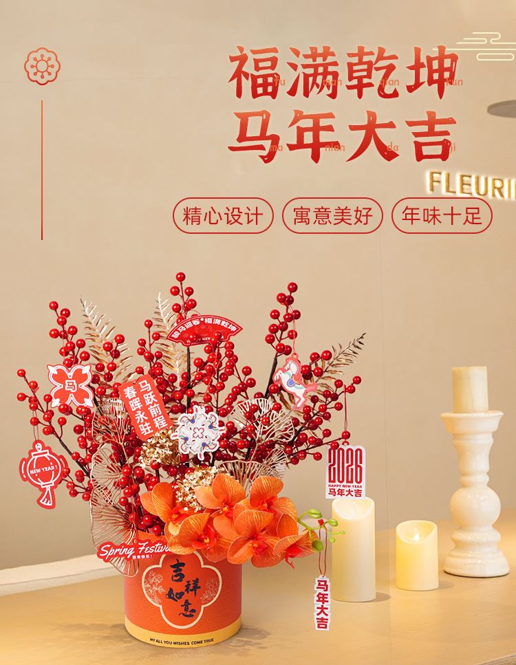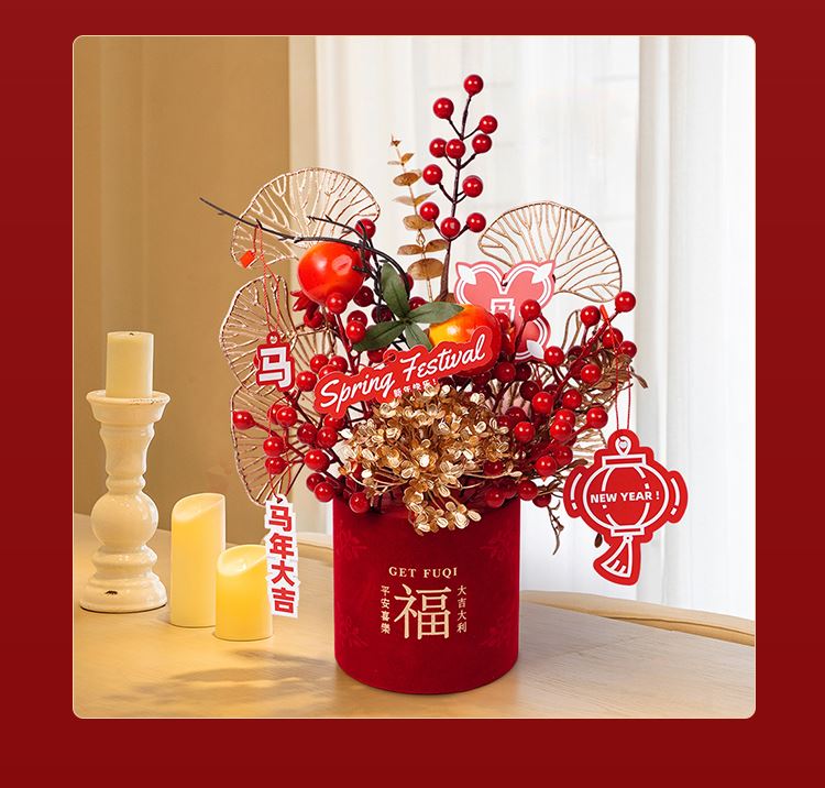 马年春节年宵花冬青红果摆件送客户客厅装饰礼品W4767