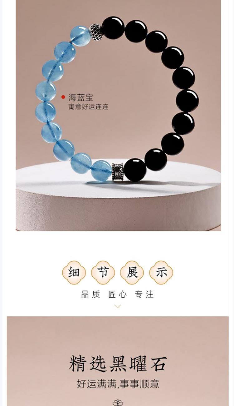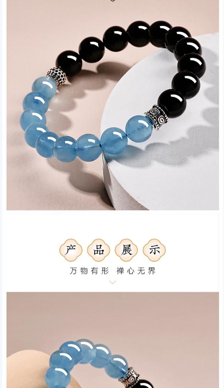 核心的寓意:平衡与和谐 海蓝宝处理内在的情绪和沟通,黑曜石处理外部的环境和能量冲击。一个以柔化刚,一个以刚护柔,共同构成一个完整的能量防护体系。 强大的能量循环:“净化-守护-宁静” 黑曜石作为一道防线,先将外来的负能量挡在外面。海蓝宝则在内部安抚由内而生的负面情绪(如焦虑、紧张)。
