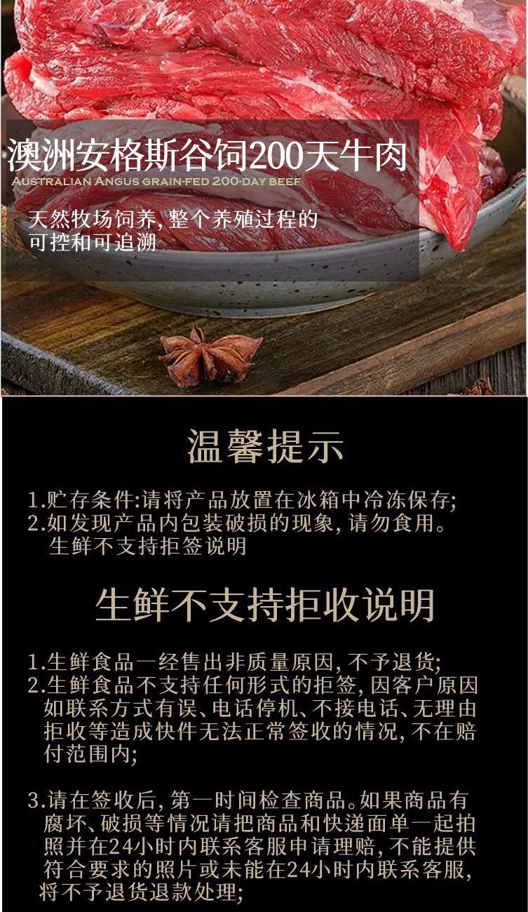 澳洲谷饲安格斯牛肋排500g 澳洲谷饲安格斯200天牛肉400g 安格斯谷饲薄切眼肉牛排130g 安格斯谷饲薄切菲力牛排130g 安格斯谷饲薄切西冷牛排130g 安格斯谷饲薄切雪花牛排130g (赠)秘制黑胡椒牛排酱240g 外彩箱 加厚保温箱+保温措施 免费宅配到家服务