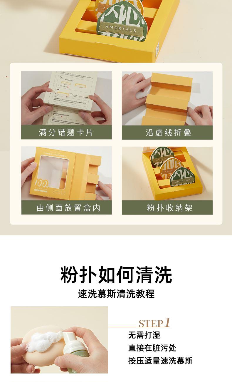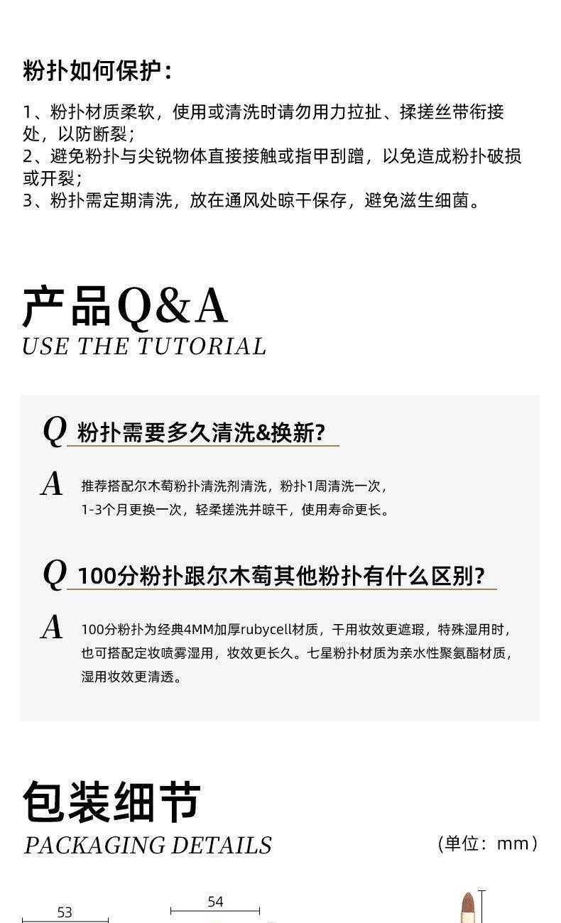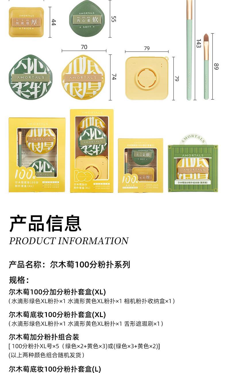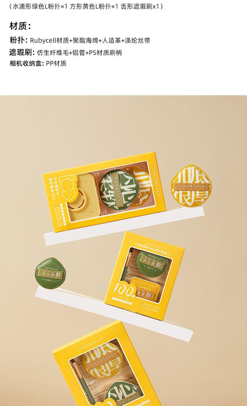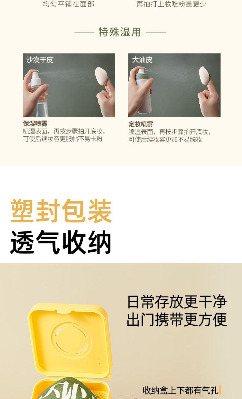 尔木萄100分加分粉扑套盒(XL) (水滴形绿色XL粉扑x1水滴形黄色XL粉扑x1相机粉扑收纳盒x1) 材质: 粉扑:Rubycell材质+聚酯海绵+人造革+涤纶丝带 相机收纳盒:PP材质
