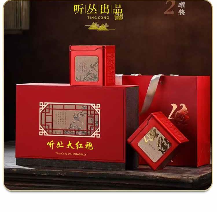 【茶名】:大红袍 【重量】:250g 【配件】:铁罐+礼盒+手提袋 【口味】:清香型 【产地】:福建·武夷山 大红袍产于福建武夷山,属于乌龙茶,其外形条索紧结,色泽绿褐鲜润,冲泡后汤色橙黄明亮,叶片红绿相间。大红袍的香气馥郁,具有兰花香,且“岩韵”明显,此外,大红袍的耐泡性极强,冲泡七、八次仍有香味。 大红袍的口感醇厚且甘甜,带有轻微的涩感,但回甘迅速,口腔留香持久,香气高扬,花香与果香交织,汤色橙黄明亮!