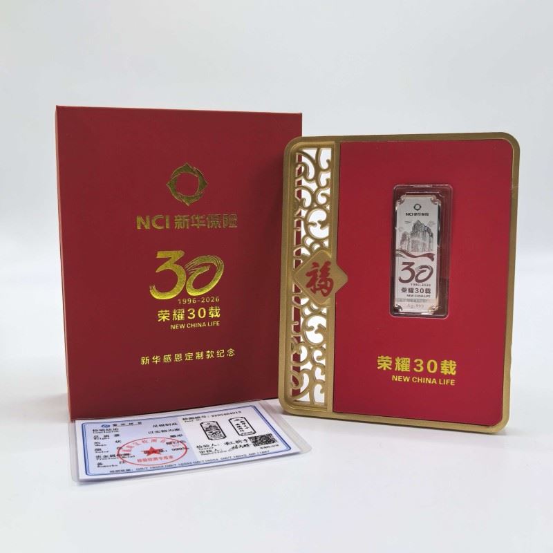 聚运鑫泰康新华中国人寿30周年庆纪念银条摆台