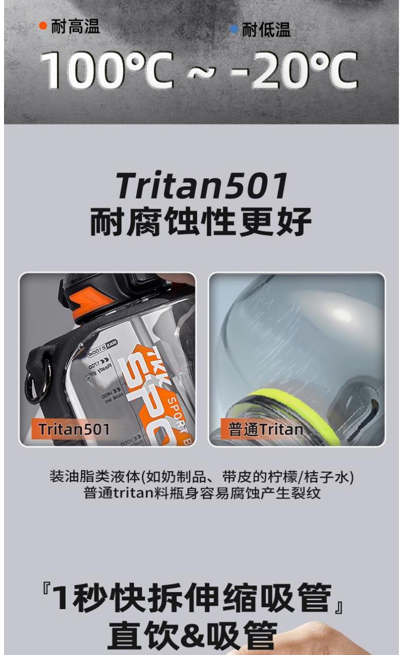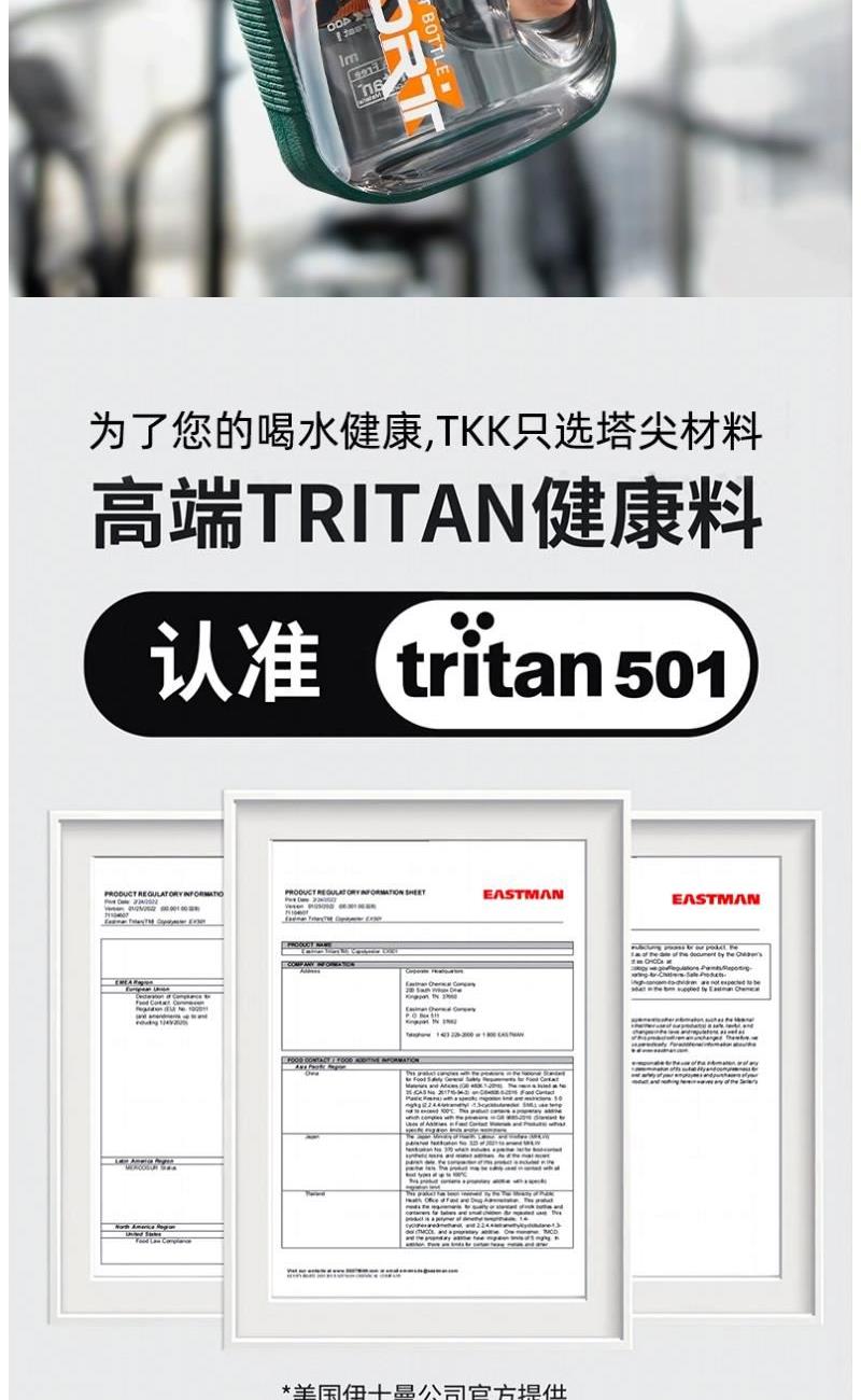 2.杯身采用美国伊士曼Tritan进口材料,不含双酚A(BPA),风靡欧美的婴幼儿用品安全材质,