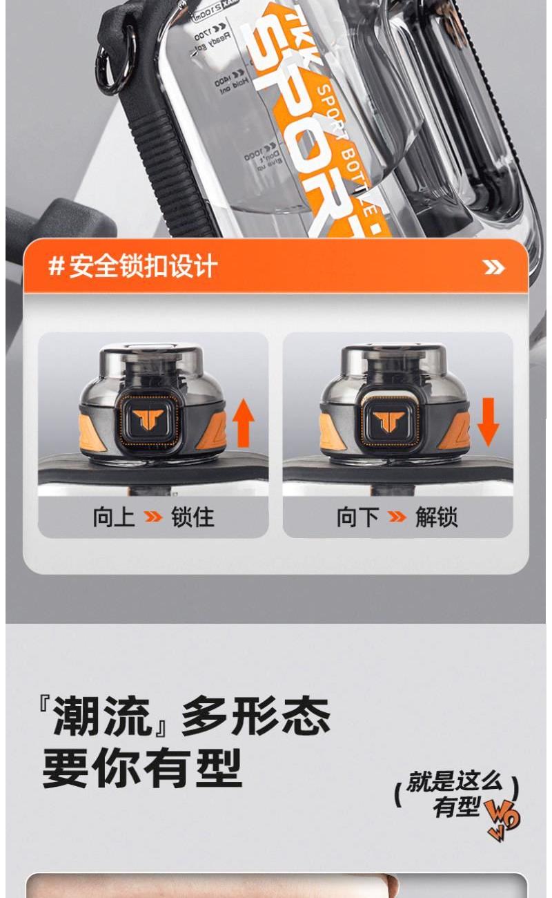 1.时尚运动感设计直饮杯 ;同时配送一个直饮吸管嘴,2种方式体验不同的喝水感。