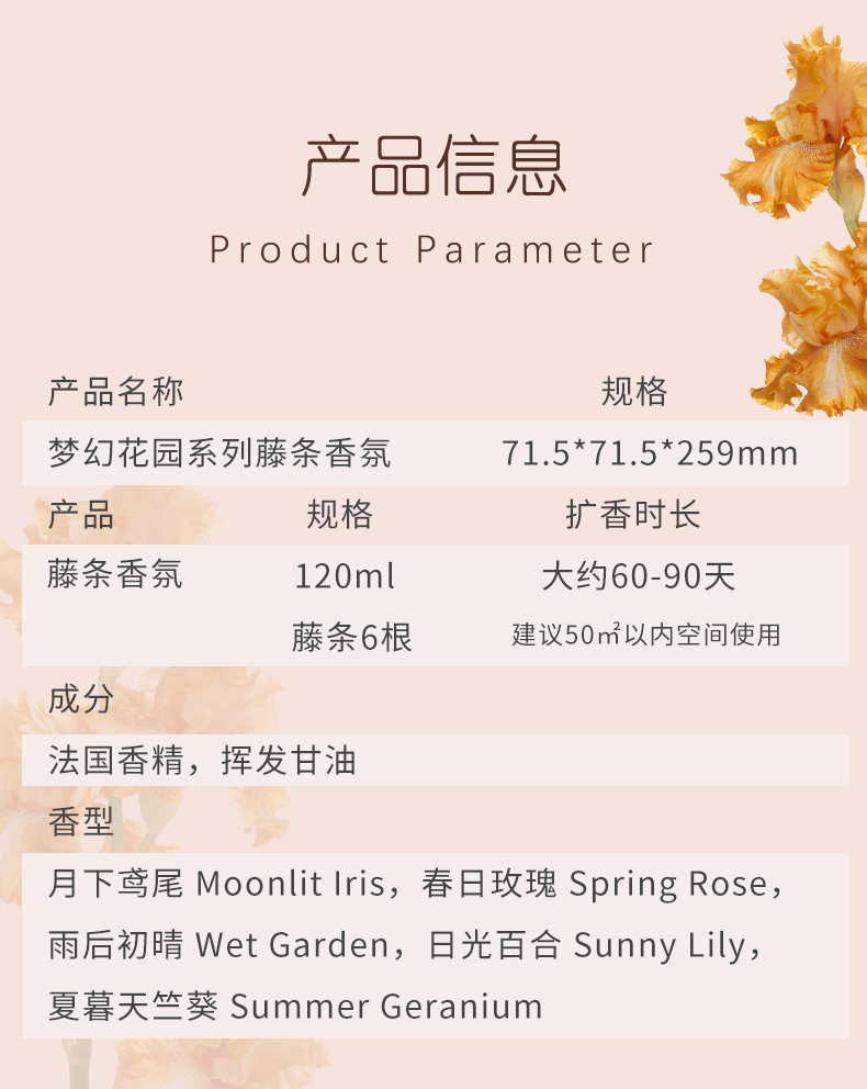 梦幻花园车家两用香氛(120ML 家用盖子+藤条,车用 盖子+挥发棉)